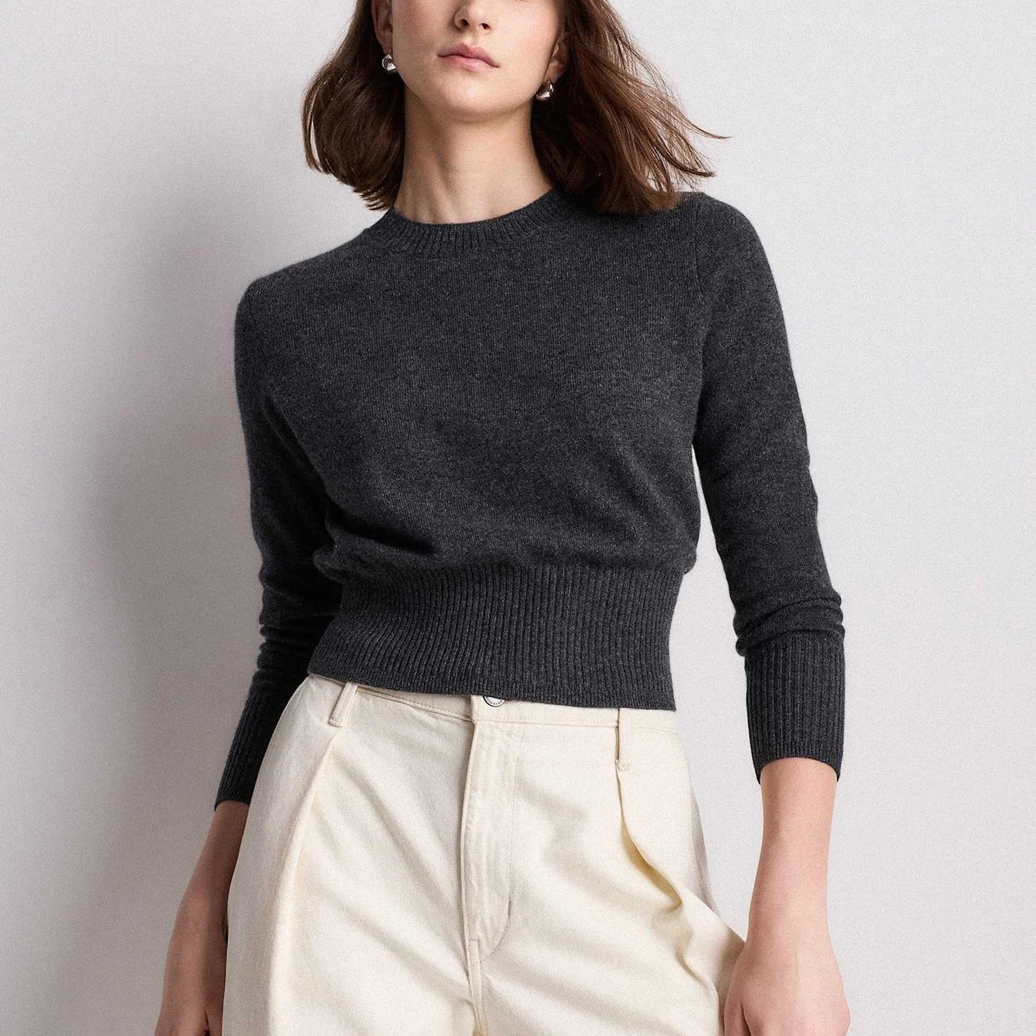 1. Quince Mongolian Cashmere Shrunken Crewneck Sweater