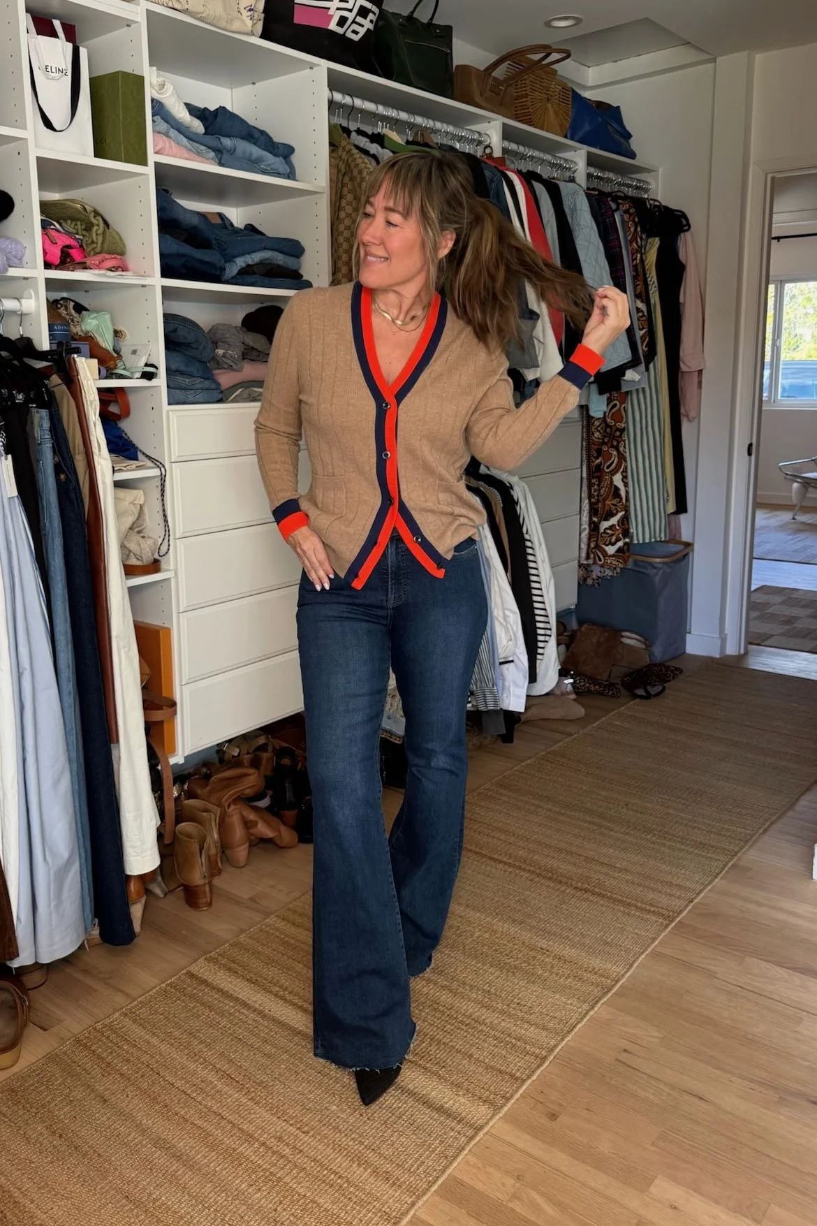 The combination of the hourglass silhouette, pocket placement, and bell sleeve makes this cardigan so stunning on arms and a belly pooch. It comes in every stunning, neutral color, which is awful because we want it in every single one. We can be our slobby selves in baggy jeans and a baseball cap but with this sweater, we cannot not look sophisticated.