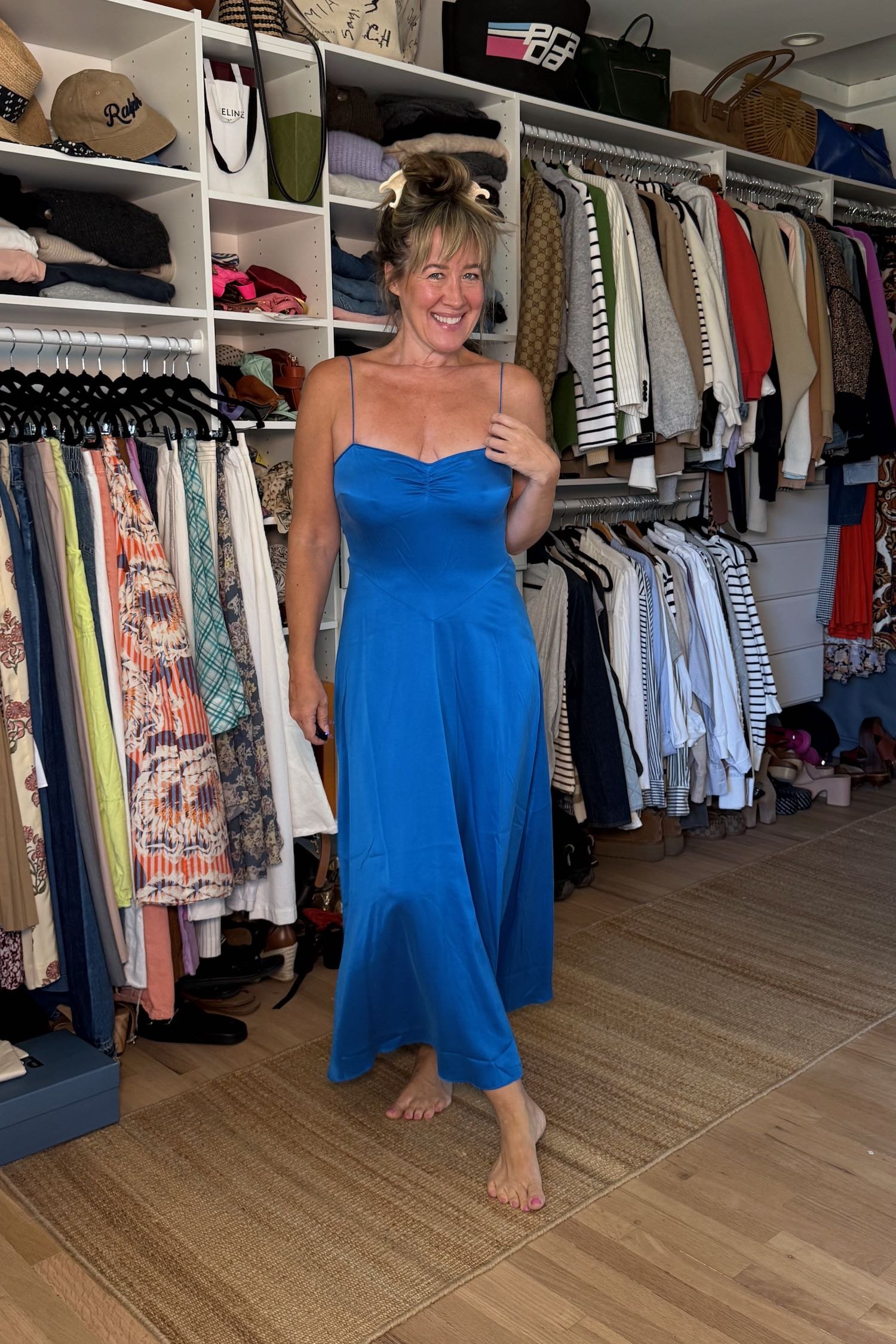 Why it sucks: It doesn’t suck. It’s gorgeous. And saying this BREATHTAKING blue dress* is a “before” is blasphemy and I am aware of that. We actually wrote about this dress in the brown and white polka dot version HERE but then I saw the blue one in store and had to have it immediately. Do I have an event that calls for such a dress? I do not. And I have many dresses. And yet dresses are so pretty and make us feel so good so we need to wear them more. So here’s what we do: