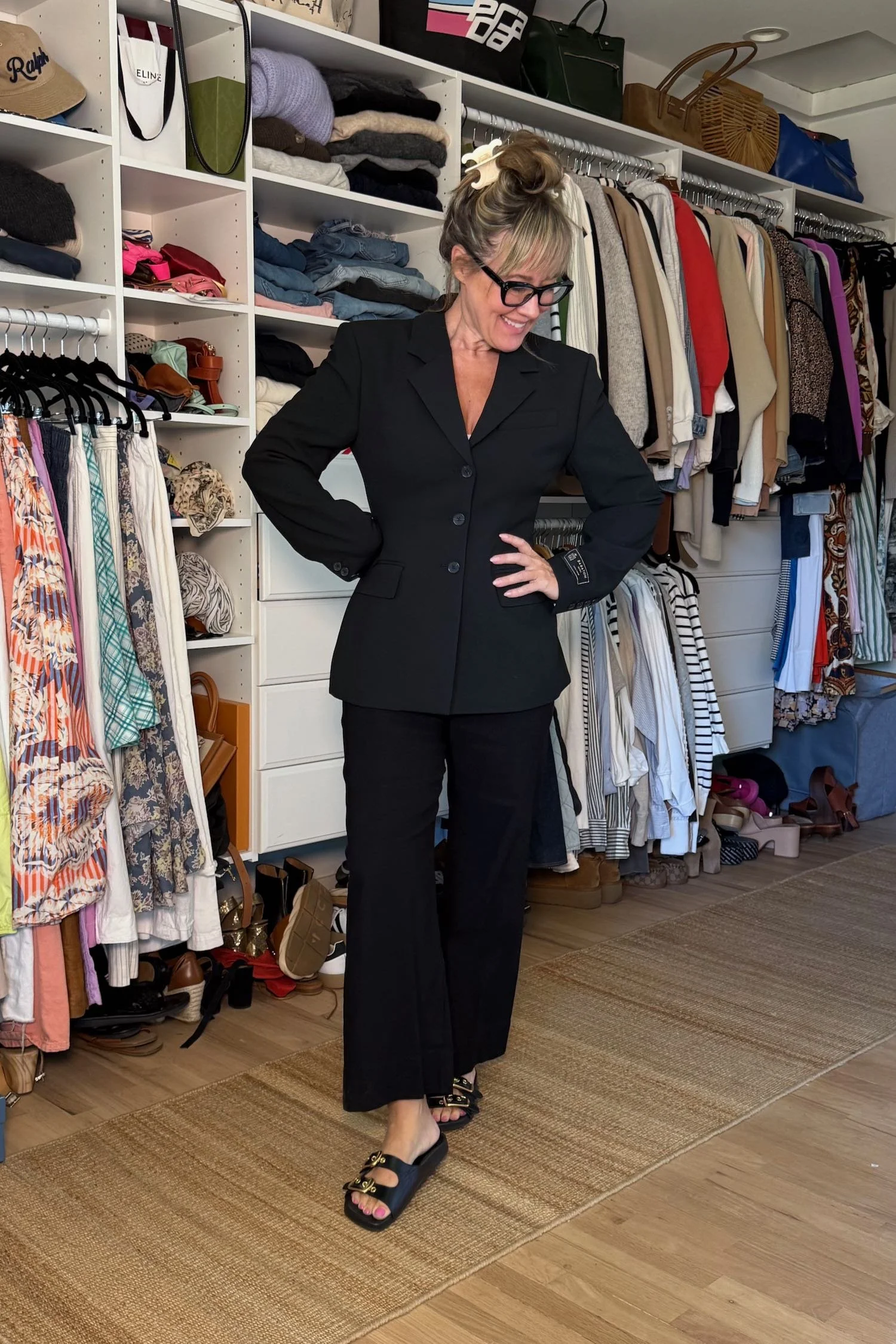 Why it works: The chicest possible pairing with black is … black. I’m sorry. It just is. And presumably if you’re wearing black pants you’re trying to be a leeetle bit fancy, yes? Black pants with a black blazer* is unbeatable. Supremely gorgeous black flats* don’t hurt, too. And by the way, these are the most comfortable-yet-flattering black pants on this or any other planet.
