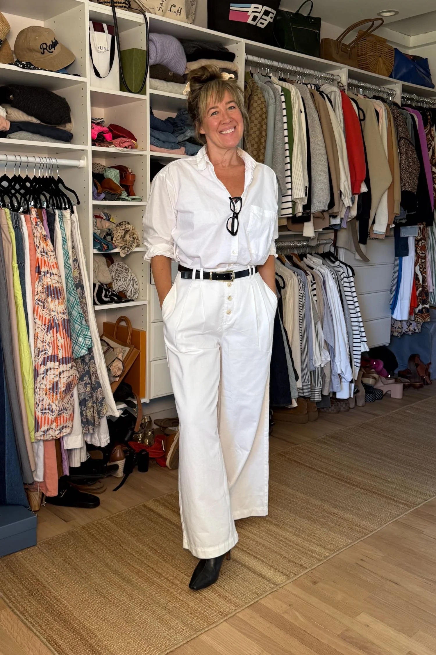 A pair of well fitting black pants is fine. A pair of well fitting white pants is life-changing. These pants* are soooo very good. Kind of like a thin canvas that never wrinkles, high-waisted, gorgeously voluminous legs, and paired with a crisp, white button-down shirt*, it sort of doesn’t get more classic and put together. Also this belt* - GOD it’s so good. I also feel quite strongly that there isn’t anything a slightly pointed black boot won’t solve—but I refuse to wear anything remotely uncomfortable on my feet. Refuse. These* are profoundly cushiony and I can walk all day. I wouldn’t. But I could.