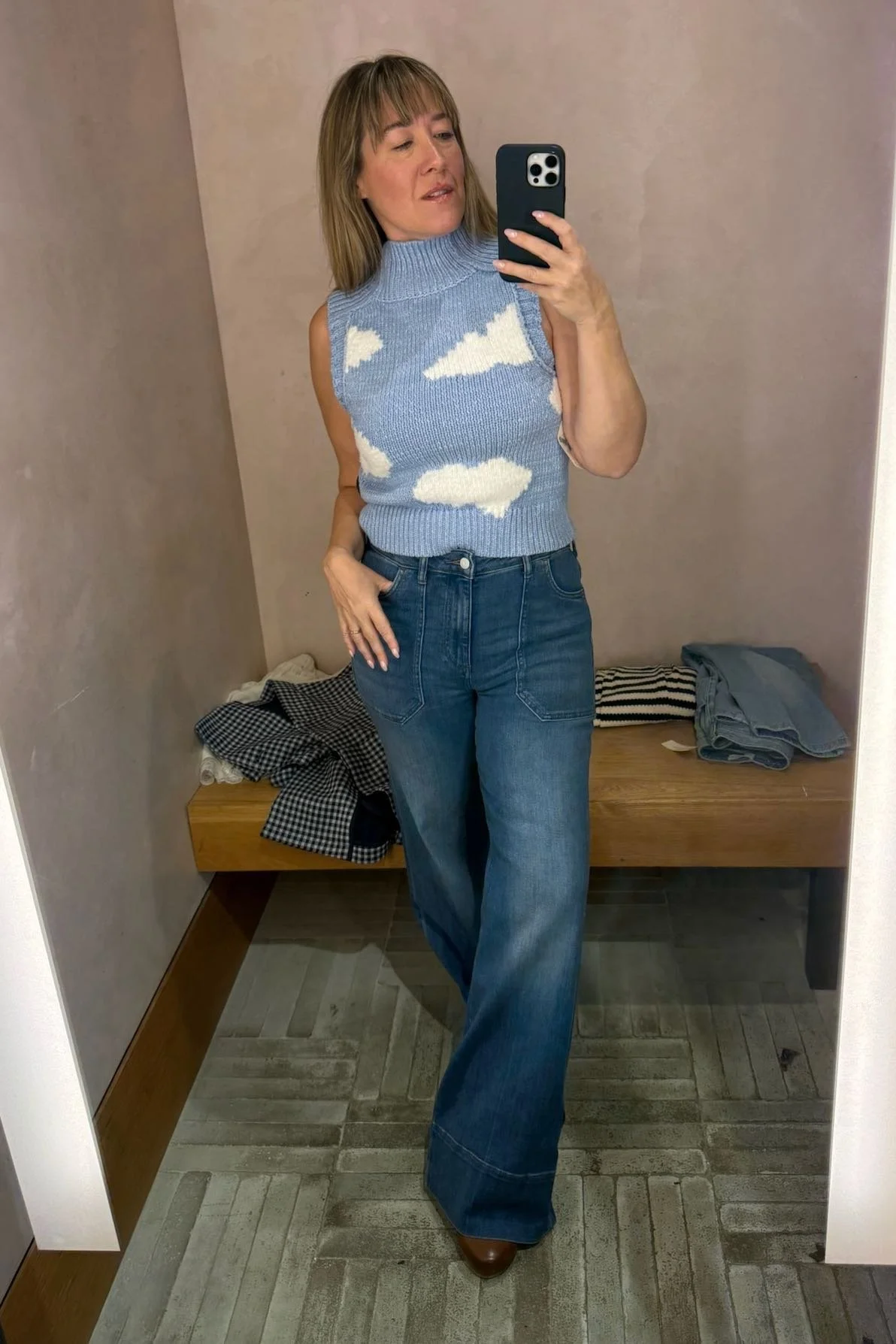 The moment I say anything remotely positive about myself on the internet I get 147 trolls in my DMs reminding me that I’m hideous/fundamentelly unlovable, but I think this sweater slaps! Do people say that still? It’s designed in such a way that it creates an hourglass even if one doesn’t naturally exist. And I know you’re scared about showing your arms but so am I so let’s just do it together. Also, I should have just talked about those truly excellent jeans* because they fit like a dream.