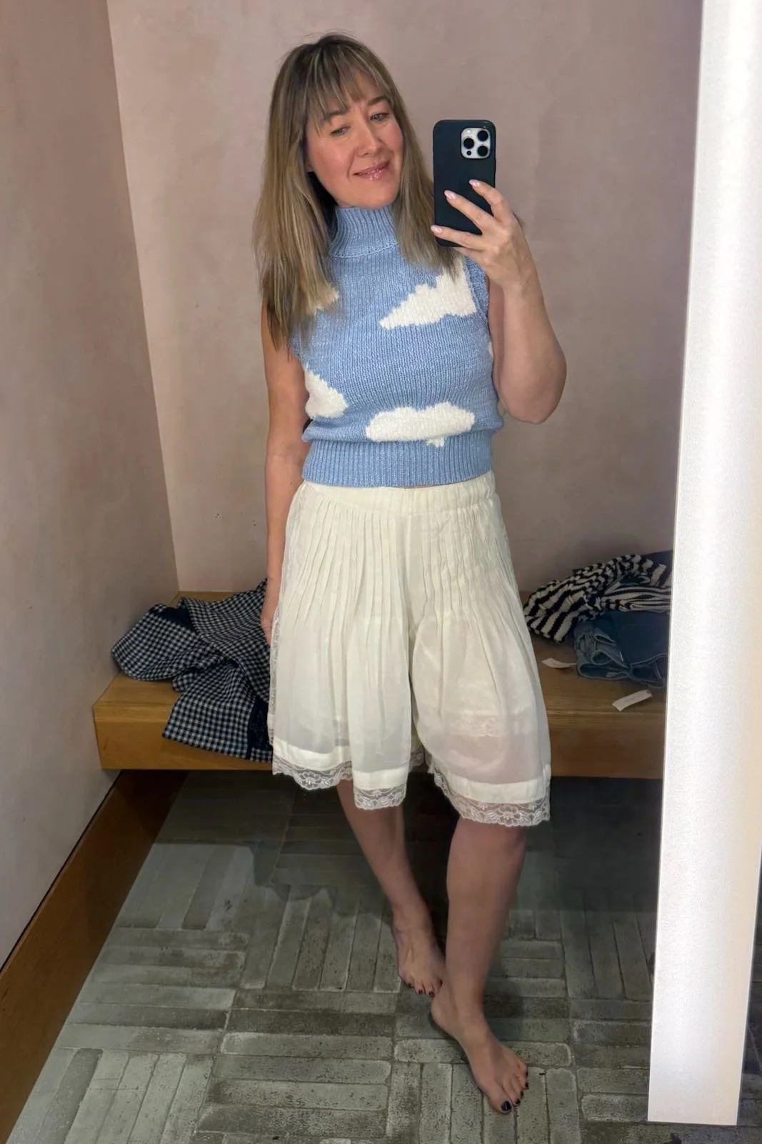 WHAT: By Anthropologie Petticoat Shorts* and Pilcro Cloud Mock-Neck Sweater Vest*