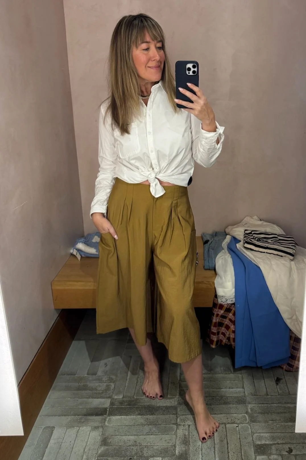 WHAT: Maeve Wide Leg Cargo Culotte Pants* and The Shrunken Bennet Buttondown Shirt by Maeve*