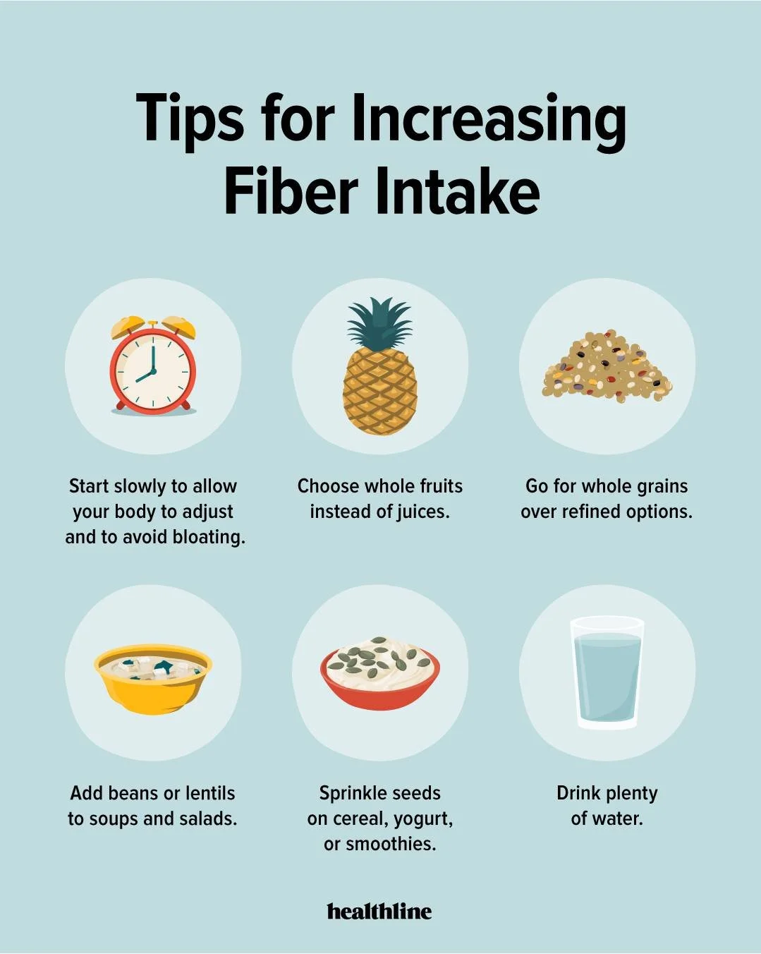 If you’re ramping up your fiber, be sure to do it slowly as increasing by too much too fast can upset your stomach.