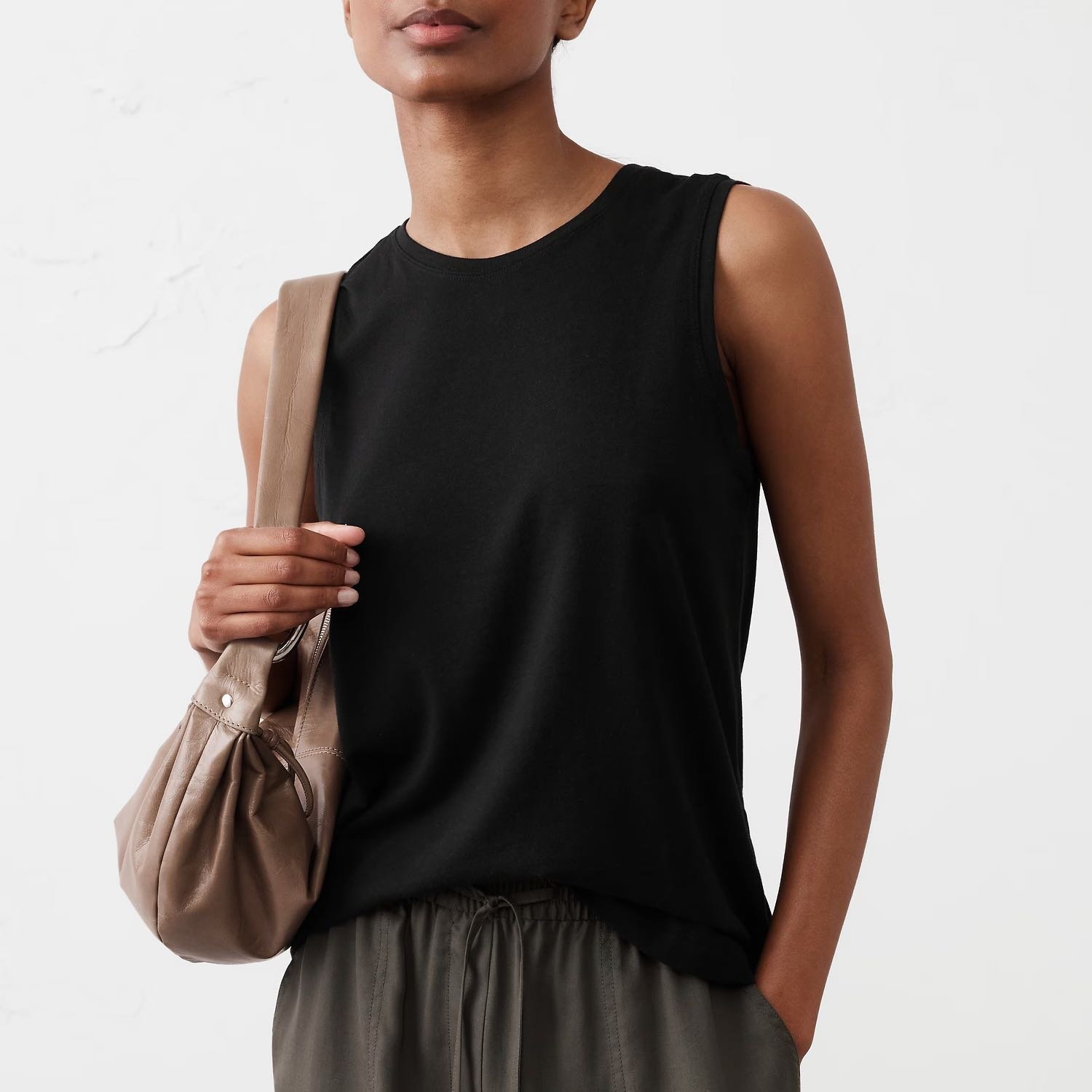 Why We Love It: We first wanted a tank with this exact shape when we saw THIS street-style look that’s been gracing fashion mags since the late 90s. Tuck it into cropped jeans, add a big old tote, and comfy, heeled sandals, and it’s just so minimalist and elevated at the same time.