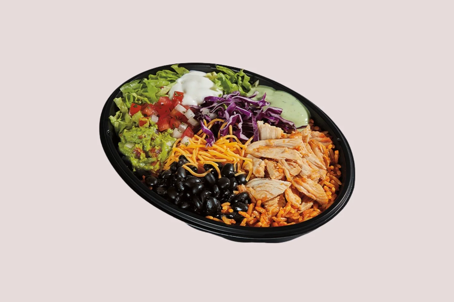 Yes, we could settle for a single taco or a fiber-filled bean burrito, but when we’re aiming for something deeply nourishing, we go for the Cantina Chicken Bowl. The bowl boasts 11g of fiber in addition to its expectedly high protein count. One downside is that the sodium content is also quite high, so if you’re looking for something lower in salt, you can always opt for a wildly filling portion of black beans and rice, which also comes in at a very low 160 calories.