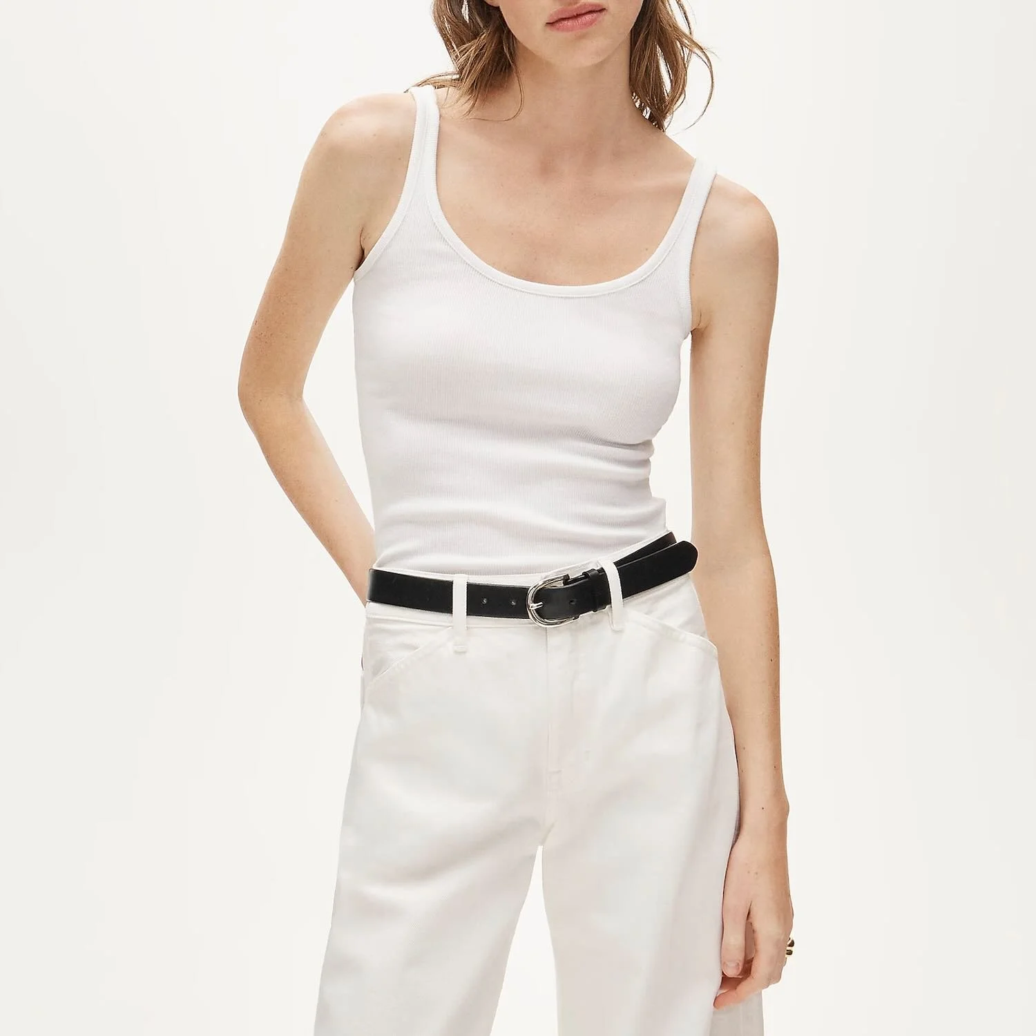 Why We Love It: Never underestimate the power of a perfect-fitting tank. Even if you hate your arms, your shoulders, your tum, this tank, with it’s scooped neck and skinny straps flatters every curve on our upper body. It balances with all the looser bottoms we love to wear and just looks very cool and Calvin Klein in the 90s.