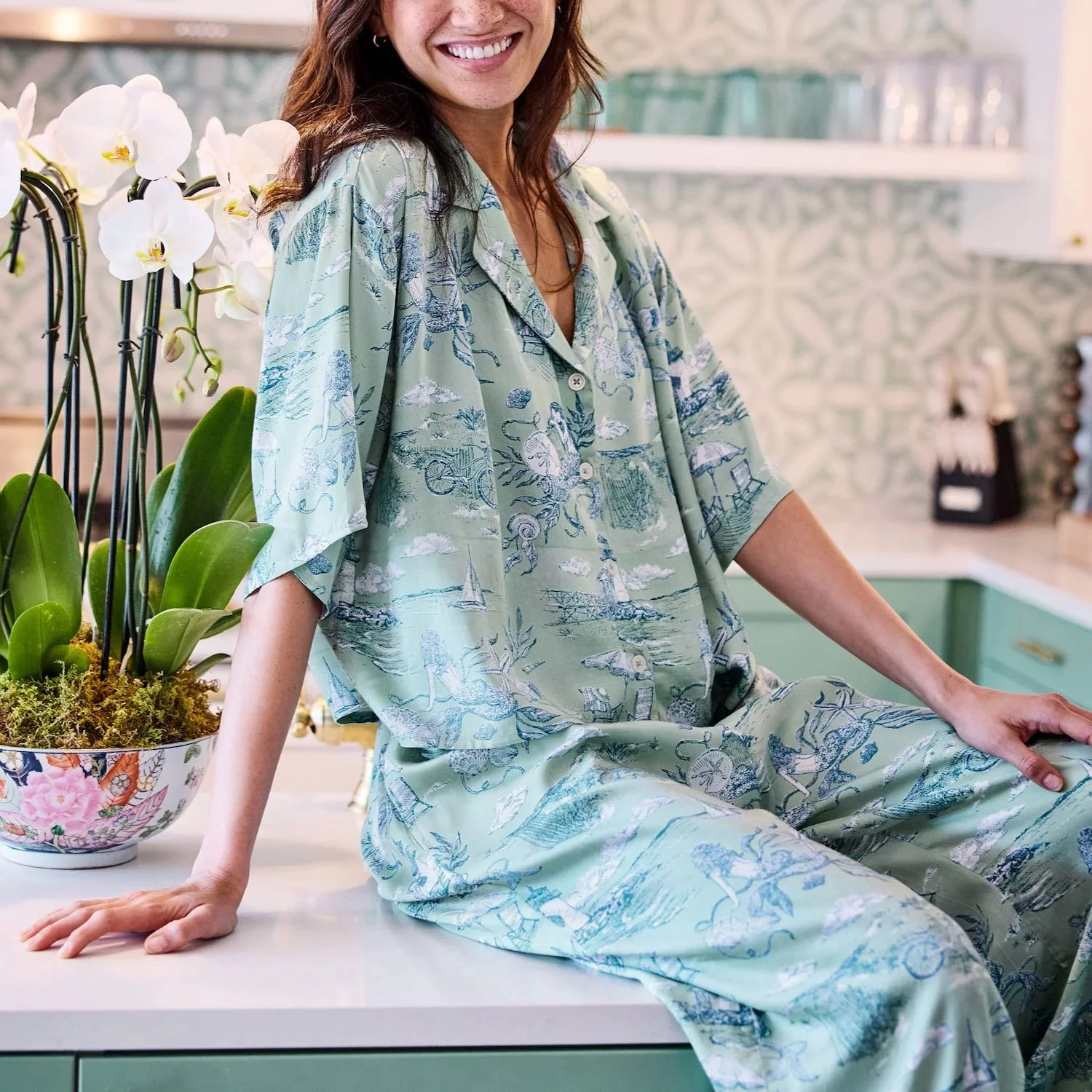 As long as we’re unwaveringly comfortable, we can enjoy the chocolate-truffle-left-on-a-pillow feeling of wearing something pretty to bed. And toile is the most unifying pretty print for women. It’s like the true crime podcast of designs. And just like a true crime podcast, this lulls us straight to sleep.