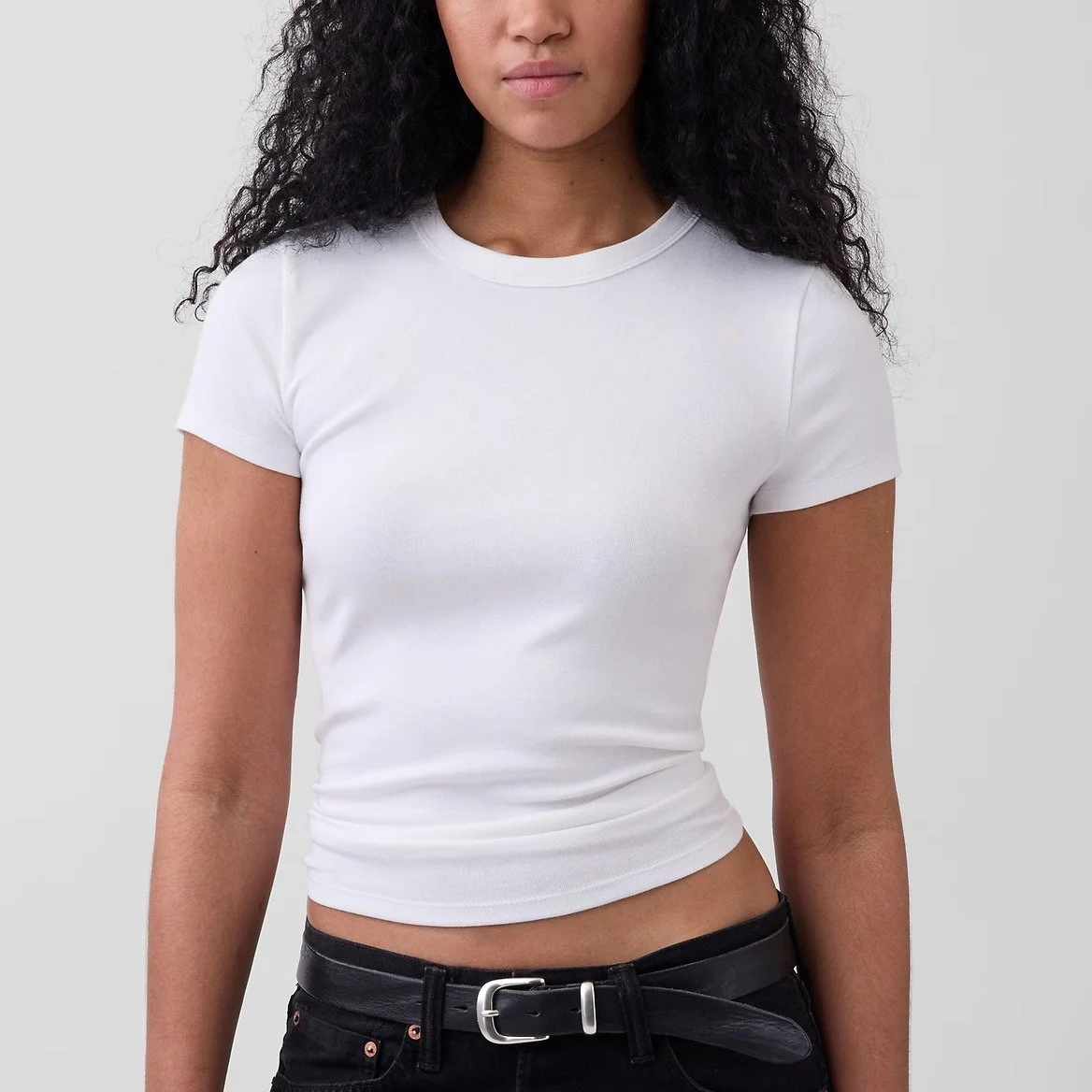 Why We Love It: A smoothing, fitted tee balances with every bottom we wear from baggy to boyfriend jeans, from midi skirts to tailored trousers. This one holds you in and gives you your best silhouette.