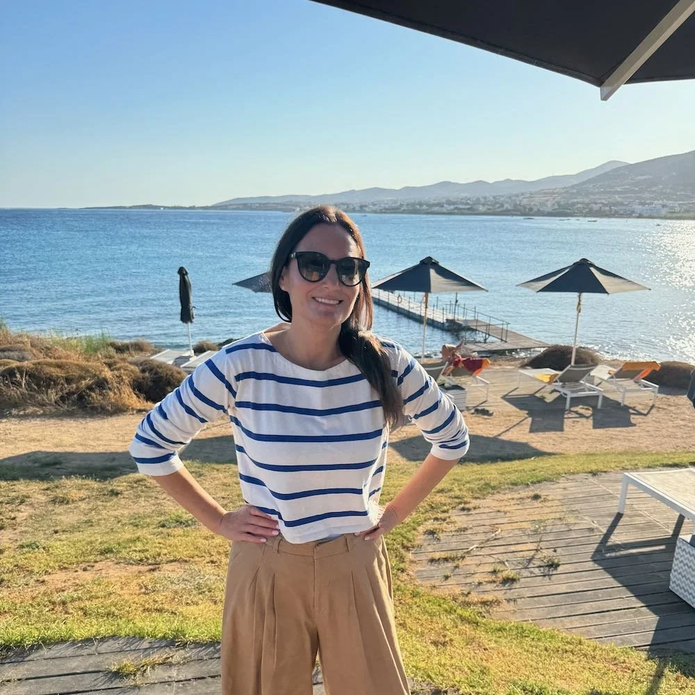 We do also love this slightly cropped version from J.Crew, which is what our vacationing managing editor is wearing in the next photo. Sadly though, it does tend to sell out. But if they have your size, pounce!