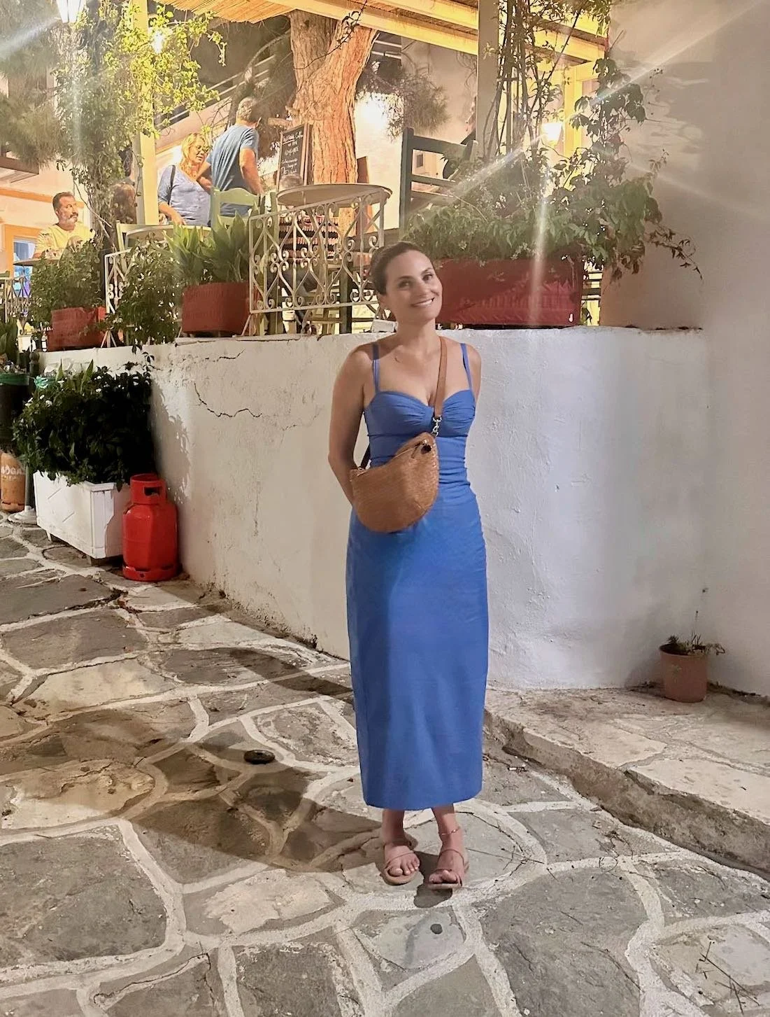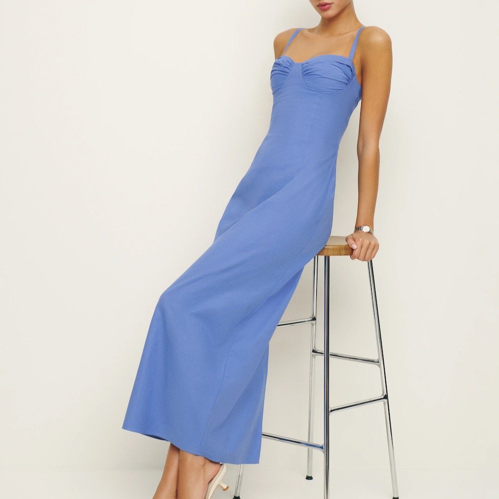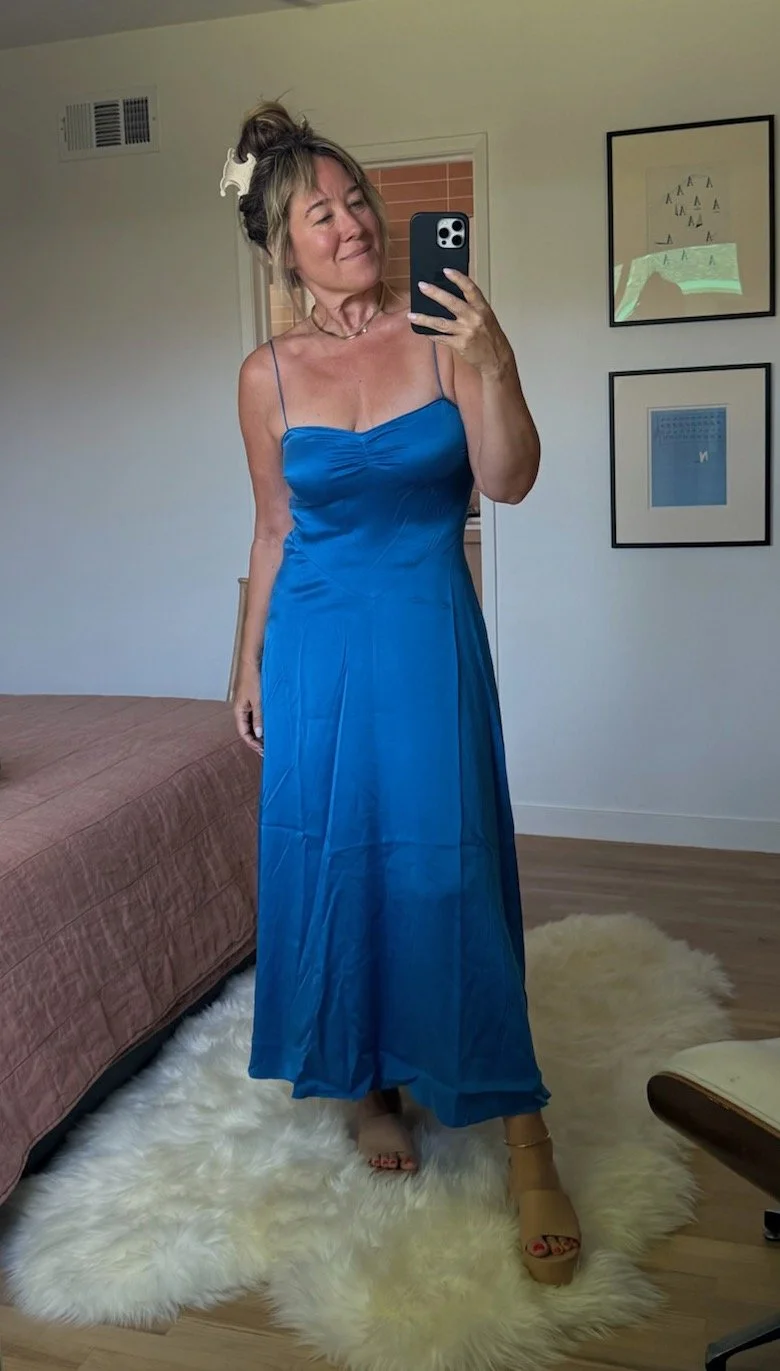 Obviously, this was one purchase made in some stunning boutique on the coast of France, but we all need a commanding dress-up moment on vacation. And we think a little blue dress (not black, not white) is the right way to do it. The key is for it to fit unbelievably, and we found two that do.