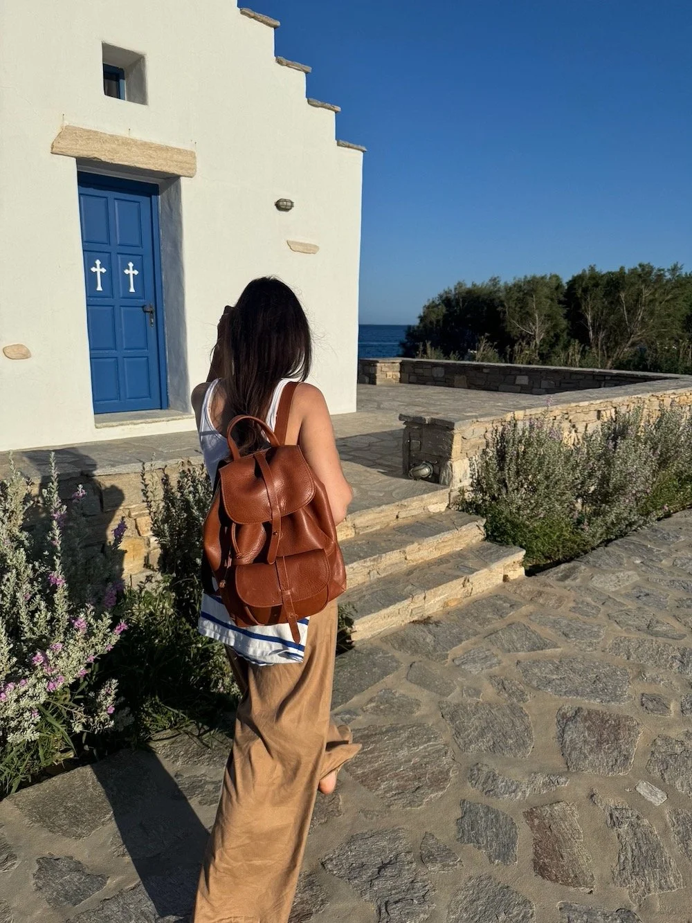 This was the piece that had a chokehold on our Editor-in-Chief for 20-something years and that she finally found and that probably inspired this entire article. A leather backpack represents that sweet spot between soft and edgy, masc and fem, casj and chic that we’re always trying to hit. It’s also ideal for traveling, which is probably why it was the literal focal point of the movie poster.