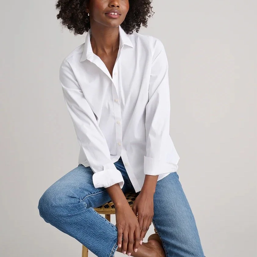 We could go on all day about the best white, button-down shirt (oops, we already did here). It is unequivocally the most useful item in our closet when we want to look Grace Kelly chic with zero effort. But we highlight this one because the ONE issue we have with some button-downs is that they wrinkle and look a mess. This one has an anti-wrinkle, stretchy material that fits perfectly and doesn’t need a lot of adjusting to look good.