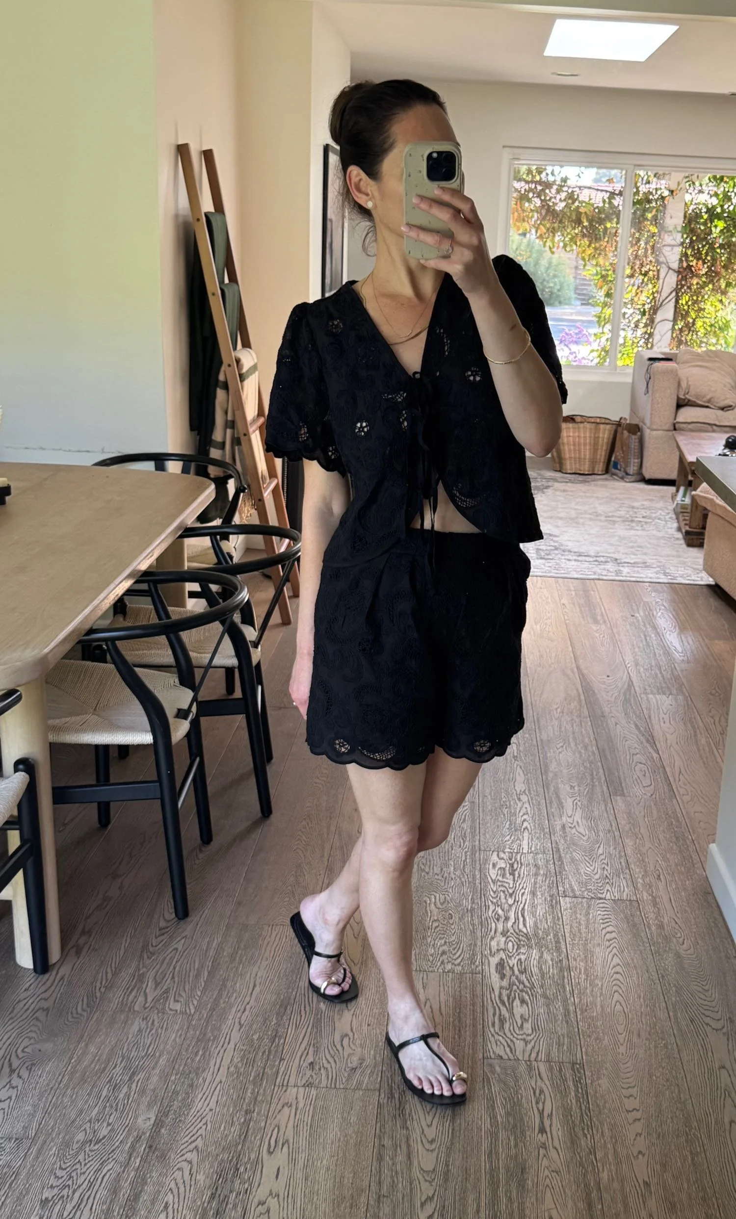 The Fancyish Shorts Set:* Another option is the slightly zhuzhed up, more elevated shorts set we’re absolutely mad for this summer because we can wear it over swimsuits or out to dinner where we unselfconsciously eat any bread put in front of us cause the fit is so comfy and the look is so chic.