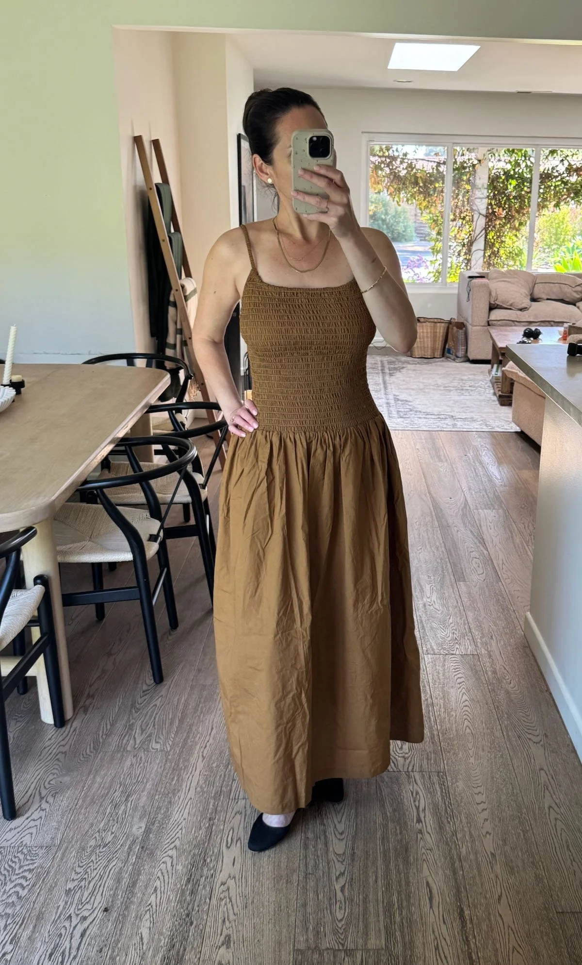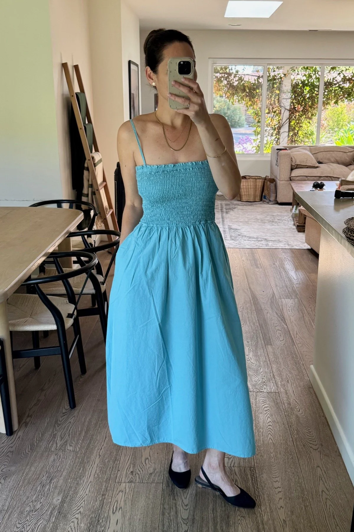 WHY IT WORKS: We like the idea of skipping around town in a sleek, little dress but we don’t want to mess around with thick bras and dresses that make us feel like we have to suck in our bellies all day (not that we should ever feel that way but tight things just have a way of making us feel on full display). A smocked dress is such an easy solution. It holds you in up top and has room to breathe on the bottom. Here is our current favorite midi and maxi versions that we plan to wear 57 times this summer.