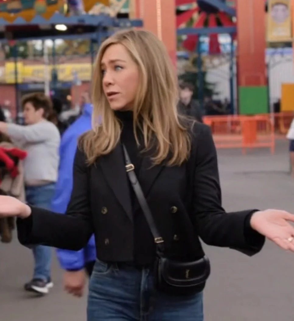 WHY IT WORKS: We first saw this look when binging Nobody Wants This, a show with outfits we wanted so much we had to find them all HERE. But the lightbulb moment really sprung from this particular outfit’s sheer simplicity. An all-black top and jeans broken up only by a chic belt, and yet, it’s the perfect date-night/ going-out ensemble. The cut of the top makes it jusssst a wee bit sexy … and it still has arm coverage - the dream!