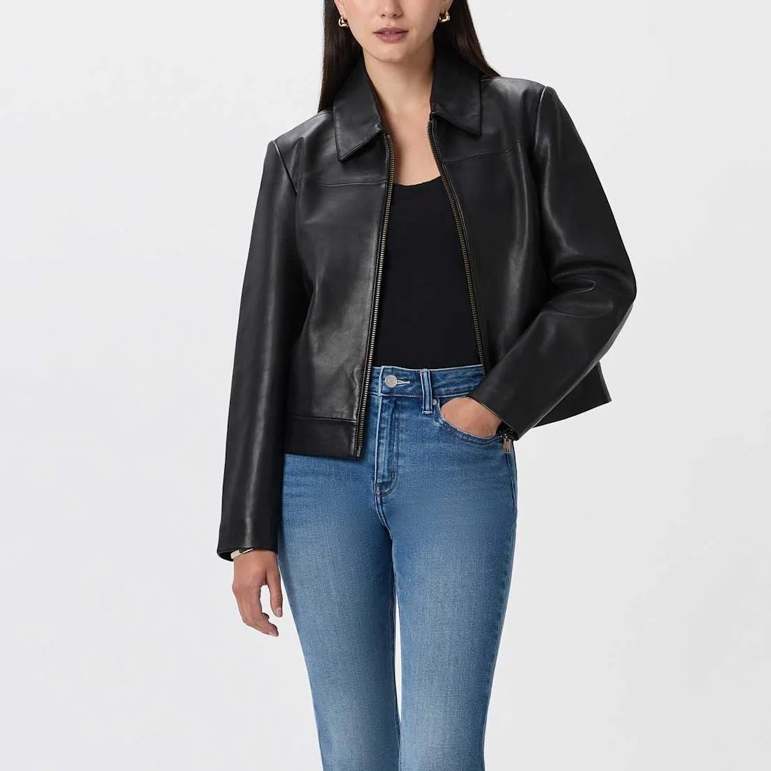 Quince 100% Leather Cropped Zip-Front Jacket*