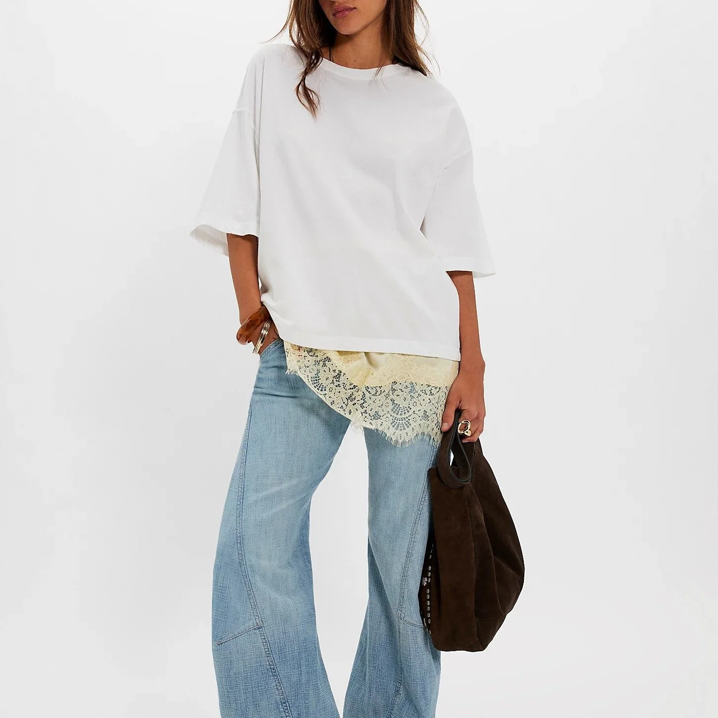 Why We Love It: When reaching for something baggy, it really helps to have something interesting going on architecturally for the tee to not look too sloppy or sad. Free People is masterful in making big, cozy things we want to enshrine ourselves in that also look fashionable and intentional. The long, drop sleeve is what does that for this tee and what makes it an effortless staple. We can wear it untucked with any long pants and a baseball cap, breaking up the looseness round the tum with a half tuck or a crossbody bag, and poof, our street style is on a Jennifer Lawrence level. IYKYK