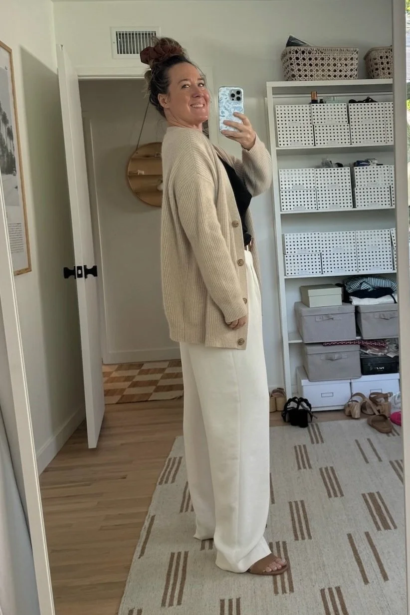 Not bad, right? I am wearing thong (which I suggest for any pants, and THIS one is the best one) but they truly don’t show any jiggling bits or anything. YES, you don’t have to get white. THIS* and THIS* color are also gorgeous and I will be buying them asap as well. And frankly they’d work in the same way as the white in terms of how to style them up.