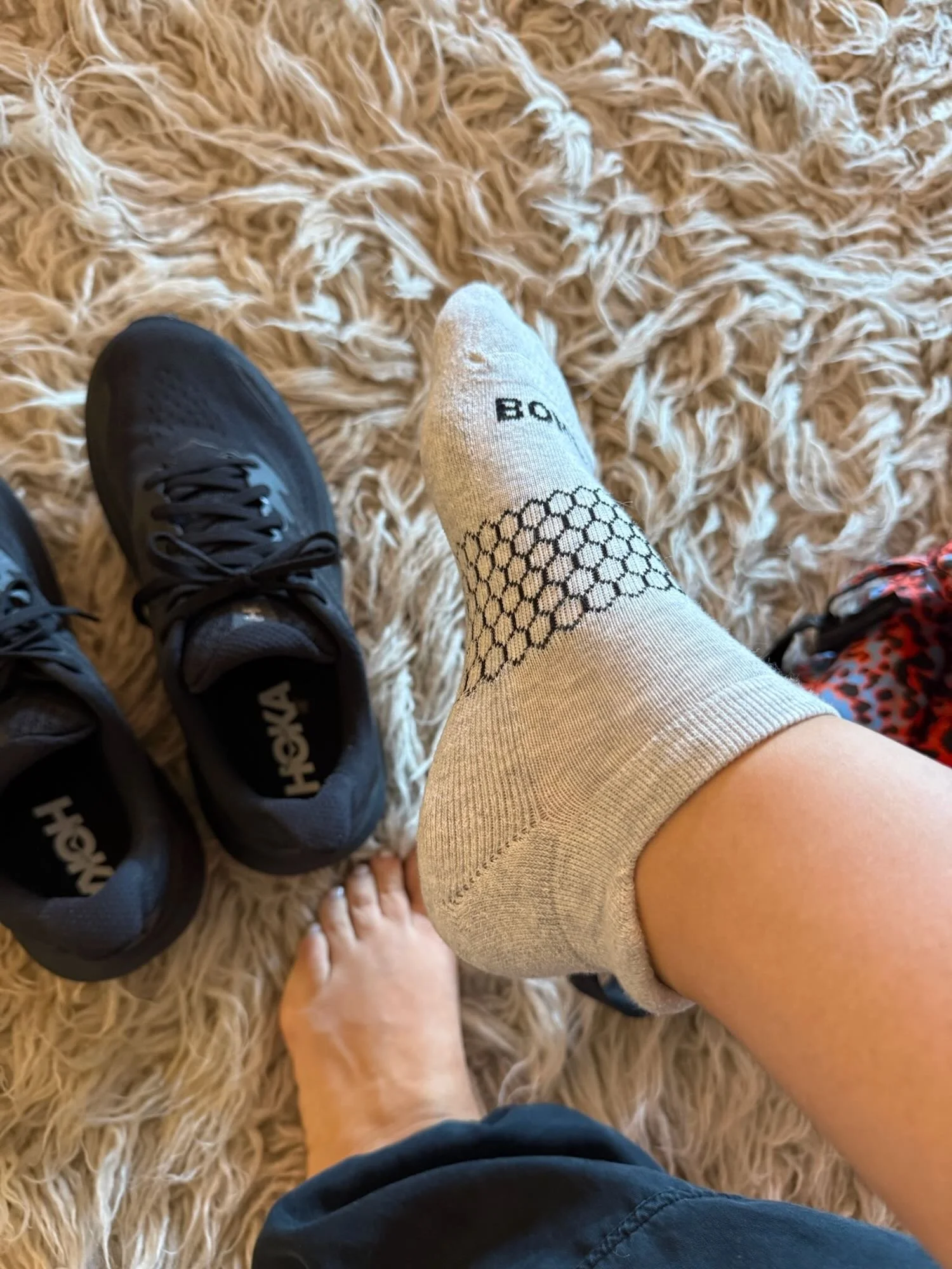 First, we put on THESE* cloudlike sneaks first thing in the morning because they literally make us want to propel ourselves into motion. Second, we stopped being cheapskates and buying shitty socks. We bought THESE* by Bombas, and our feet felt like heaven. Not sponsored to say this. These socks just were THE answer that made us do more of THIS which has both helped us lose an astonishing amount of weight and also helps us stay calm and centered each day when the type B idiots around us ask the same questions we've already answered but instead of snapping like we do when an overhead light is on, we feel entirely in control.