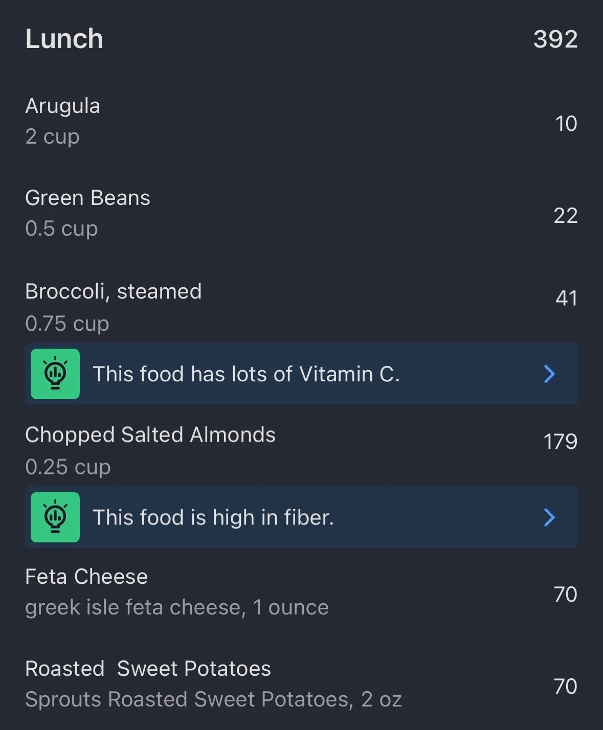 2) The inclusion of high-fiber, but not necessarily typical “salad” vegetables, like broccoli and sweet potatoes which lead to loads of fullness.