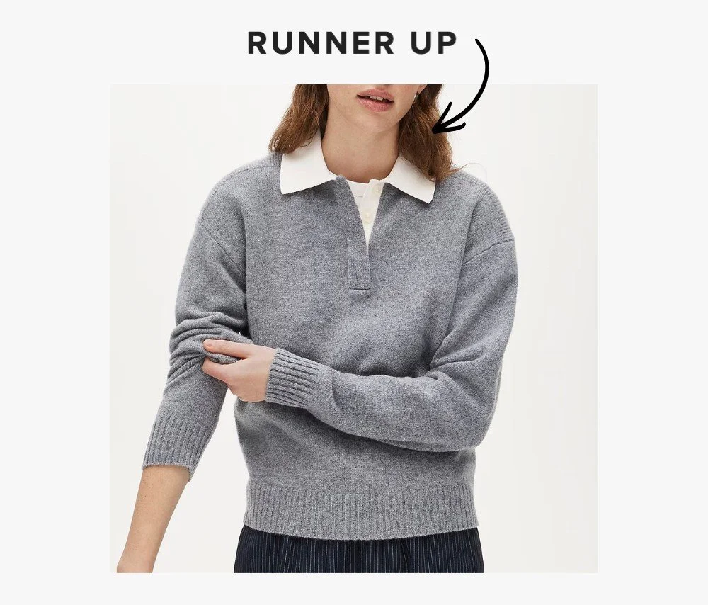 We’d be remiss not to mention THIS sweater version* that’s so classic and Carolyn-Bessette-Kennedy-esque. You’re going to say it’s a polo. We don’t care. We’ve tried it on, and now we’re buying it in both colors it comes in.
