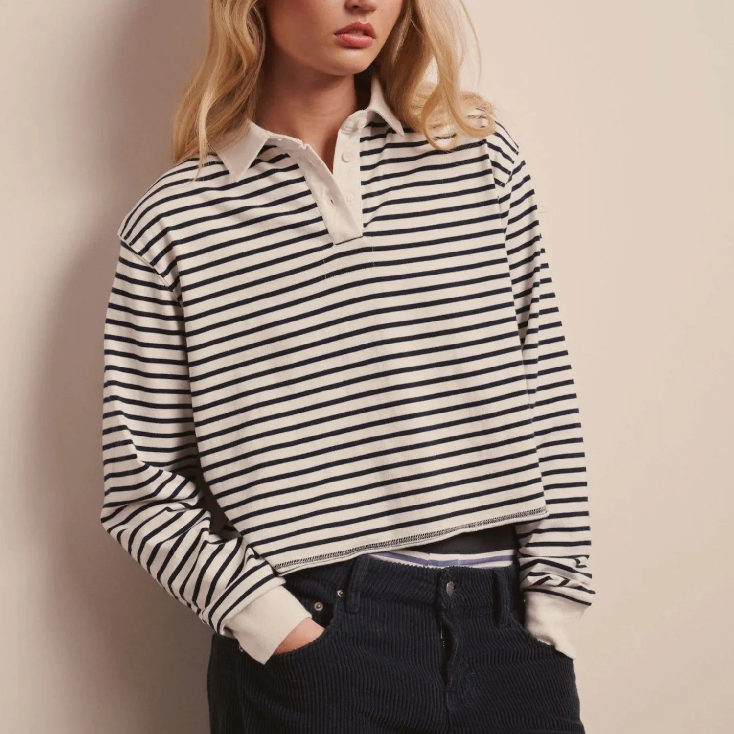 We first noticed ourselves wanting a rugby shirt when we saw one on Joanne, played by Kristen Bell, in Nobody Wants This, whose whole wardrobe was kind of a masterclass in how to dress youthful and interesting after 40.