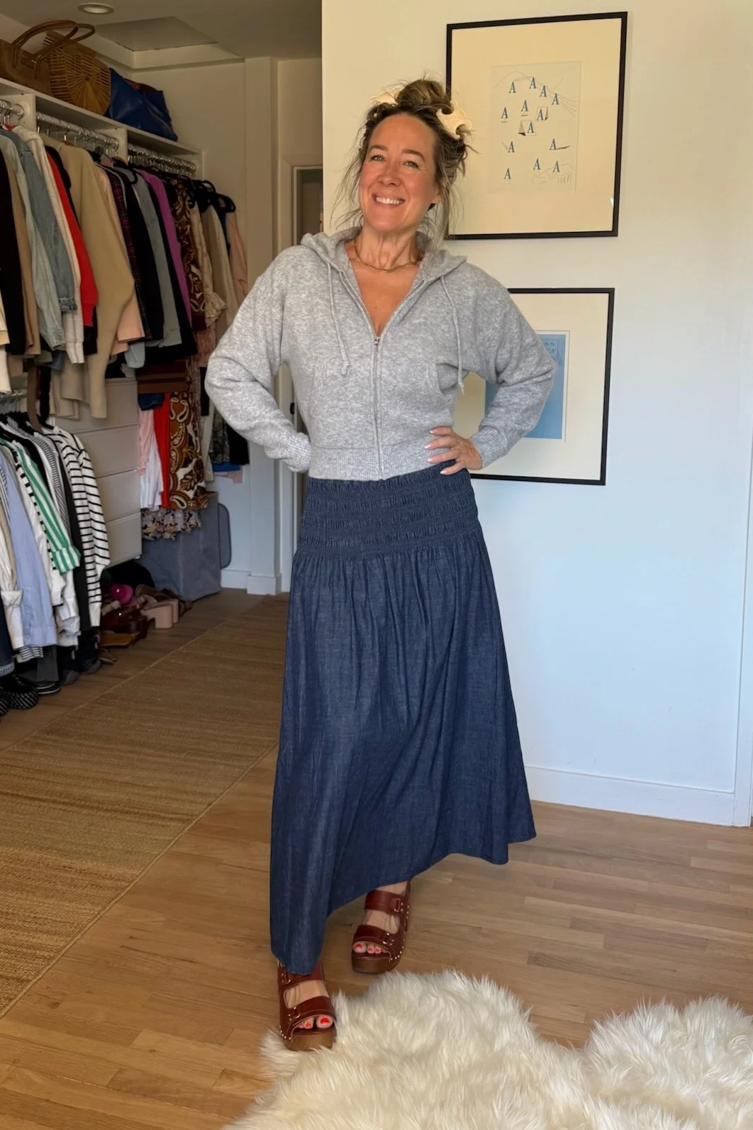WHAT: Madewell Smocked-Waist Denim Midi Skirt*