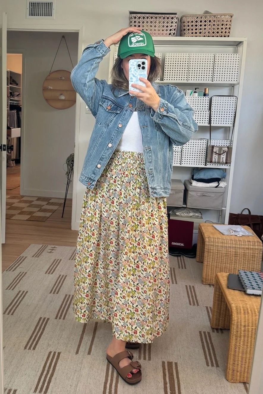 This skirt is so stunning and special, it sells out in about 3 seconds every time The Great releases a new print. It’s light and silky and luxurious, but more importantly, the smocking at the top is long enough to not dig in to the flsh around your waistline, which means it’s perfect and smooth on a belly pooch.