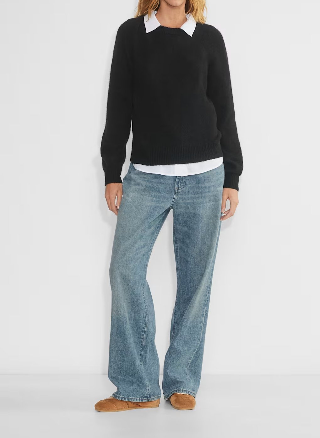 So after all that, why didn’t I ever buy a crew neck until now? I’m not sure. I think they’ve always added too much bulk. But this one feels so perfect and maybe sliiiiiiightly wider than most round necks if you scroll back up to the charcoal version I’m wearing above?