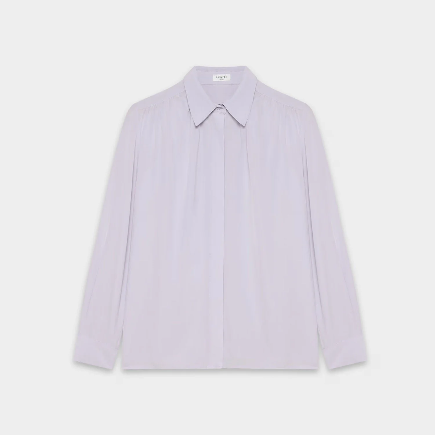 This drapey, crepe de chine button-down looks gorgeous tucked into high-waist jeans with a brown belt and ballet flats. Easy peasy.