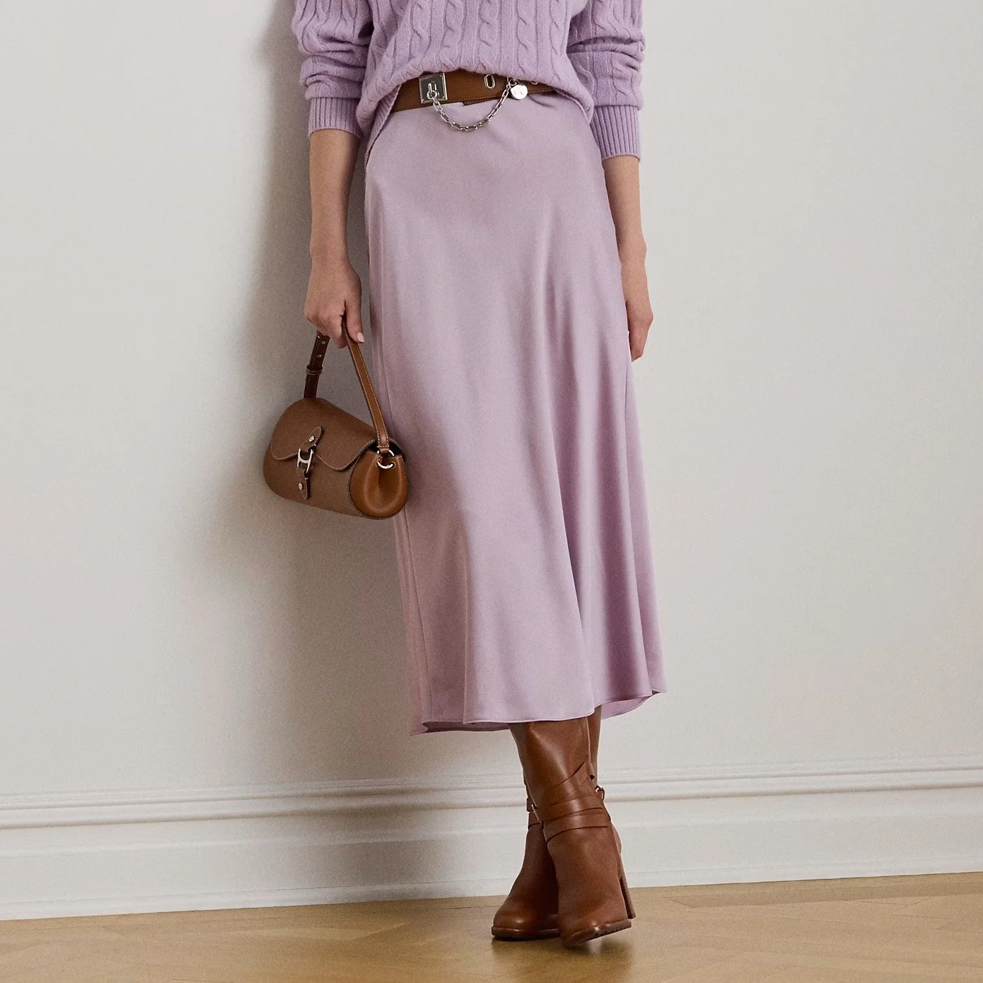Ralph Lauren Satin Charmeuse Midi Skirt