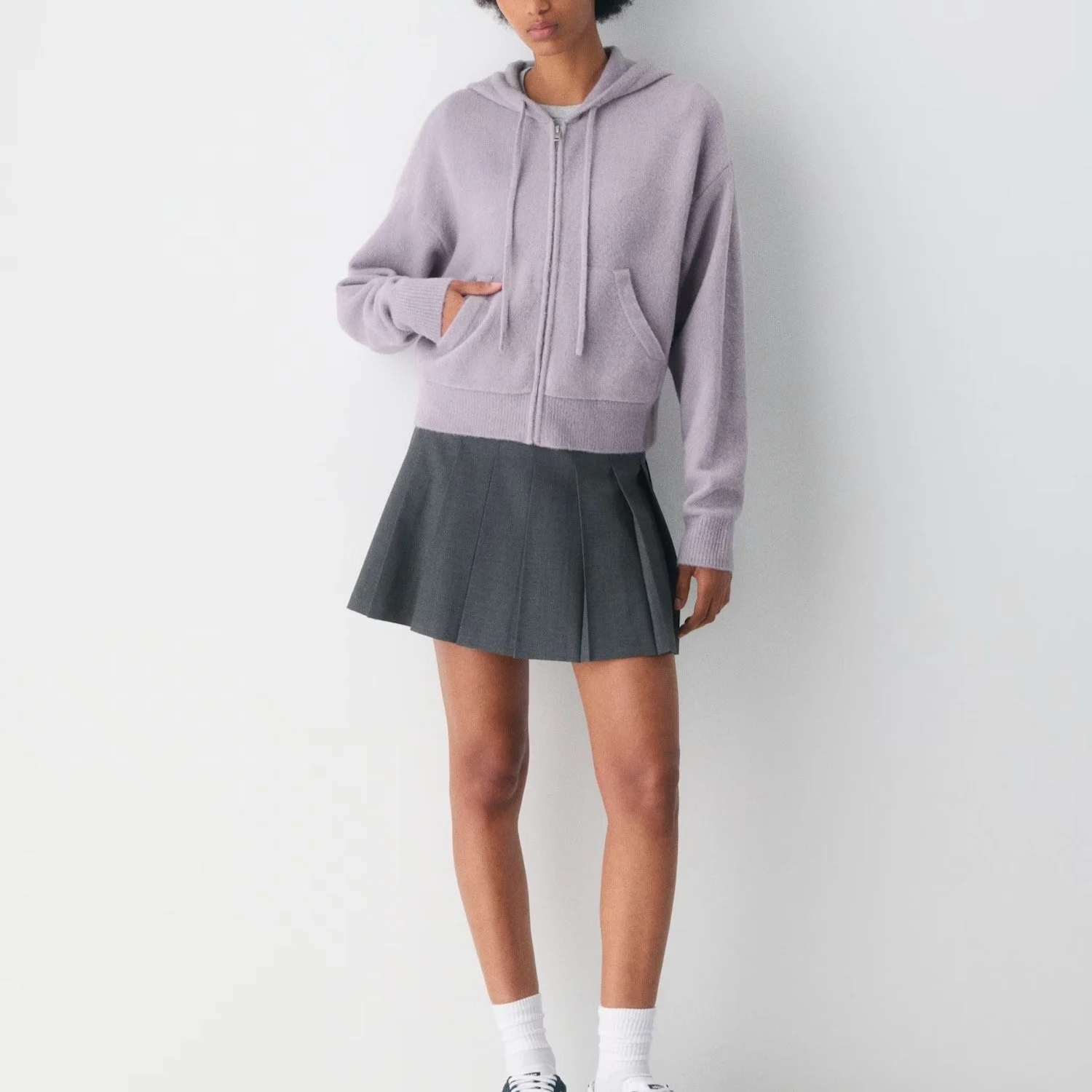 Behold, our favorite-fitting, cashmere hoodie. The photos don’t do the fit or the comfort of this half-sweater, half-hoodie justice. It is the softest thing to touch our skin. The fit nips the waist and makes our legs look longer. We live in this sweater to the point where we wrote an article about/ tribute to it HERE. It’s selling quickly so be swift.