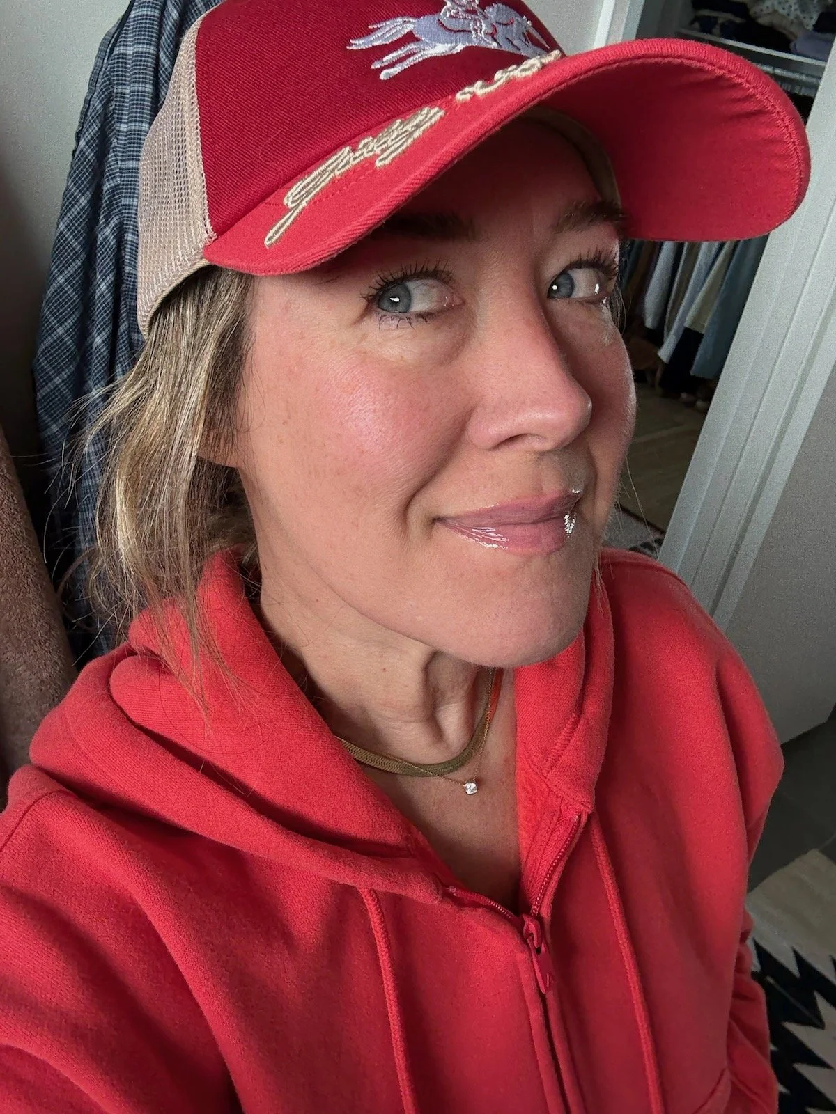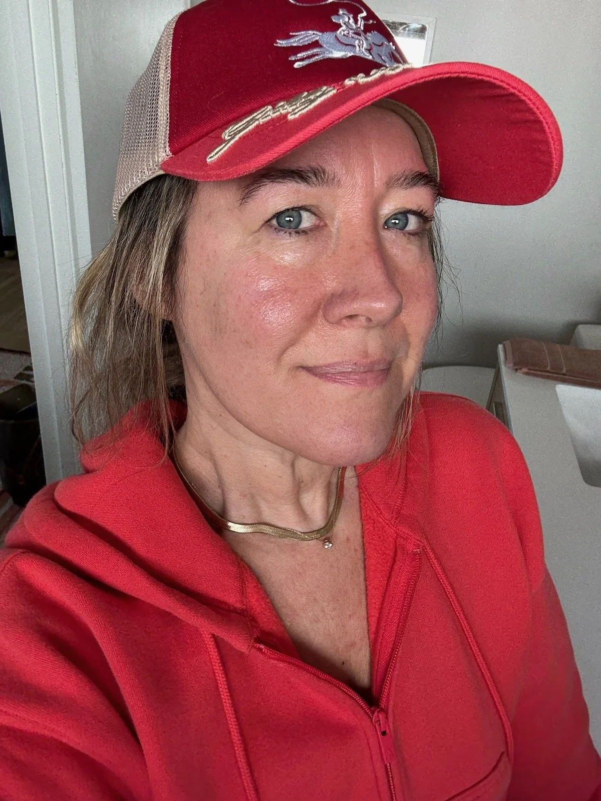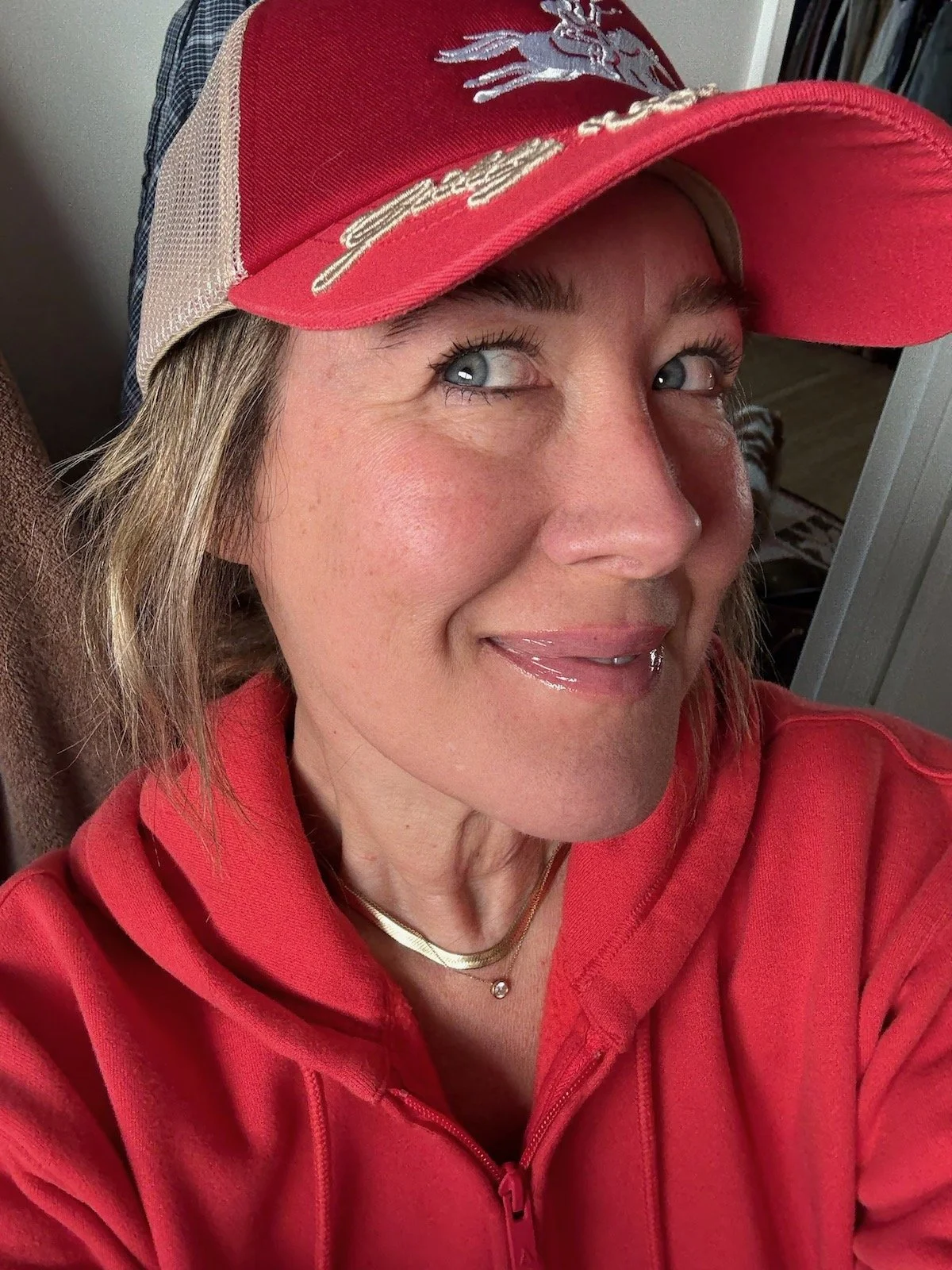 And actually, here’s a bigger smile to show it somehow MINIMIZES crow’s feet, it doesn’t exacerbate them.