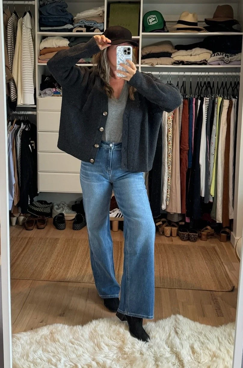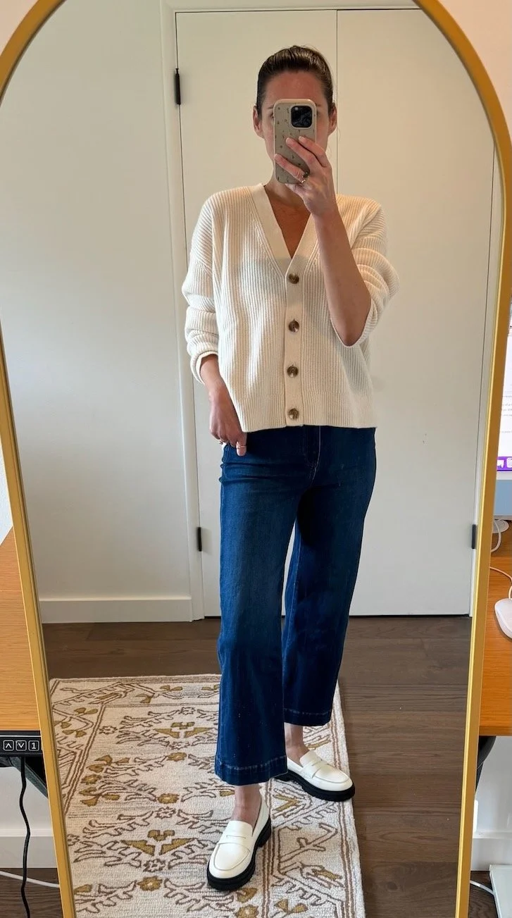 We could show you some $500 cashmere cocooning cardi from some other brand, but what’s the point? The perfect, classic (though admittedly a wee bit trendy), oversized cashmere cardigan is, once again, from Quince. We wrote an entire article about the longer version of this sweater HERE. But it now comes in cropped, which is actually the perfect not-too-long and not-too-short length.