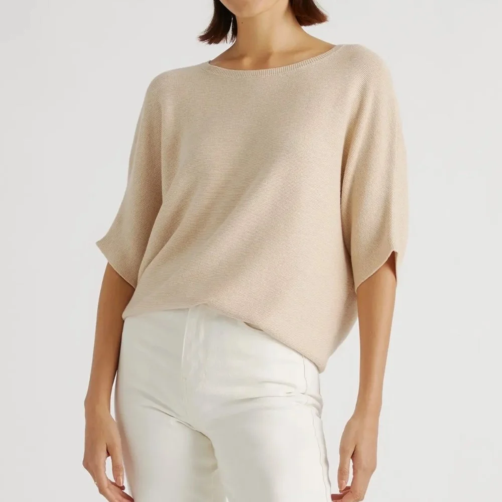 Quince Lightweight Cotton Cashmere Link-Stitch Dolman Sweater