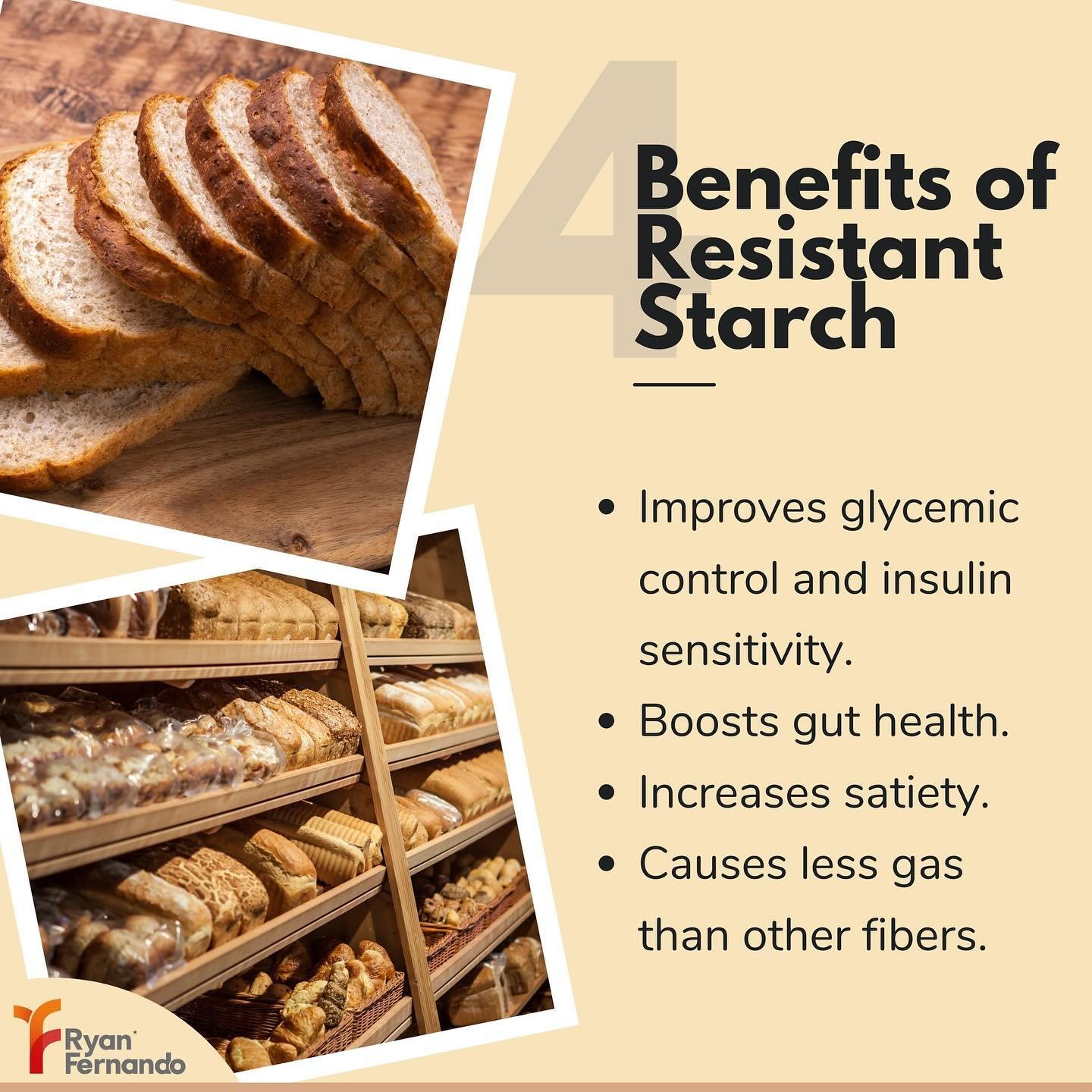 1) Some of the starch in the bread converts into something called resistant starch. Resistant starch doesn’t just break down into sugar but rather passes through your system, feeding your gut bacteria which can support a healthy gut microbiome. Resistant starch has been linked to things like improved blood sugar and digestion along with lower cholesterol.