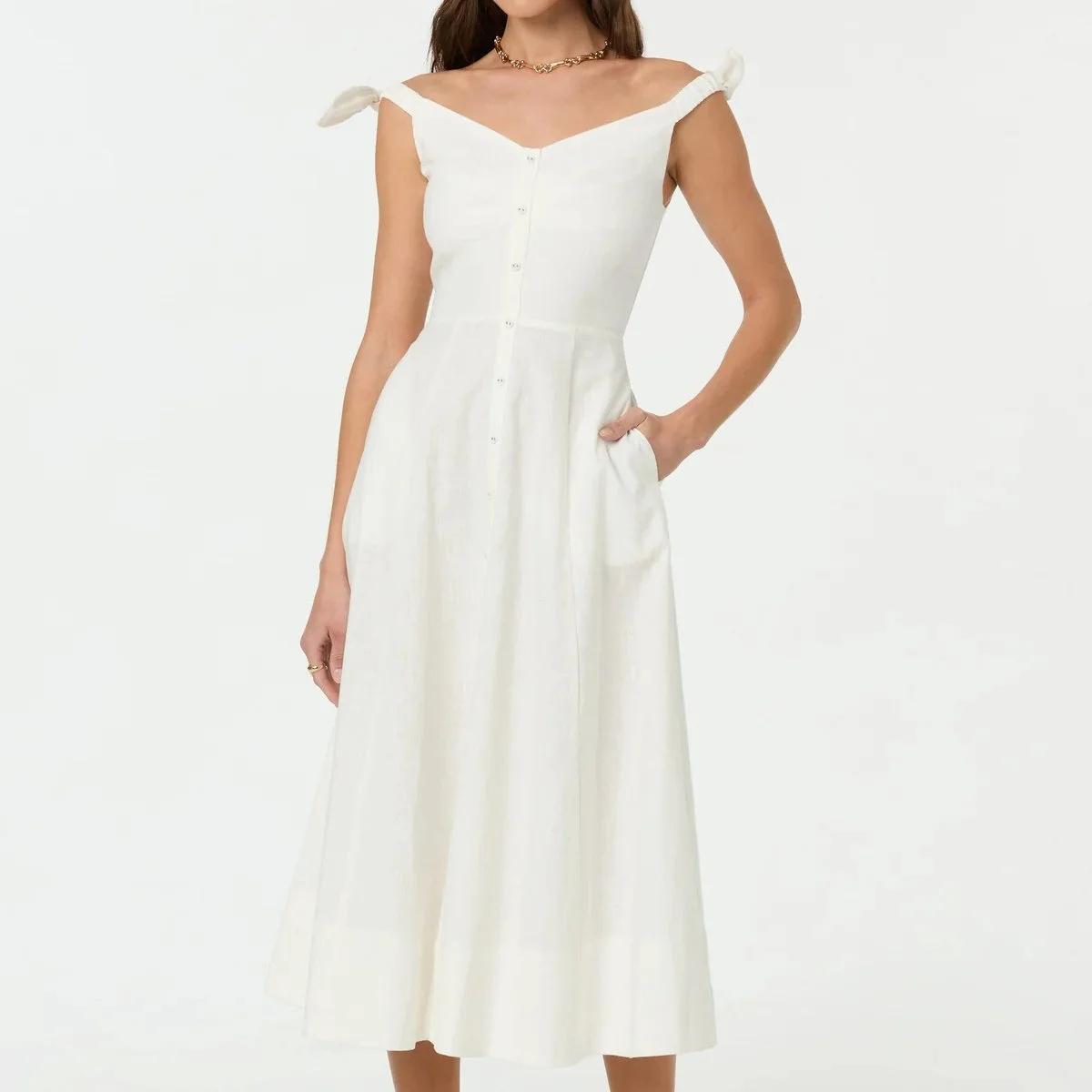 ASTR The Label Charelin Linen Off Shoulder Dress