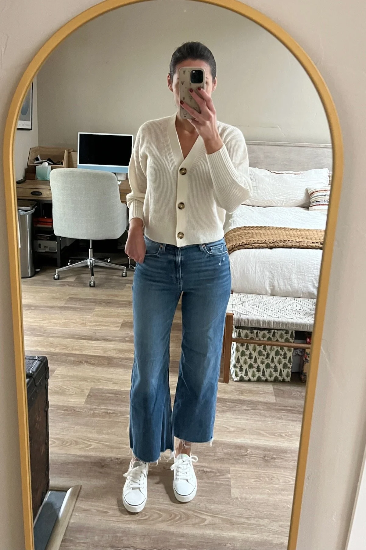 So listen, we’re not sure we knocked it out of the park with styling it, but we didn’t hate the red shoe. It felt like a lively alternative to a graceful white sneak which we love. (Sidenote: THIS same brand makes the very best little white sneak.)
