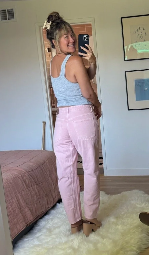 But over time, she tried on more and realized that some (SOME!) barrel jeans are good. Some are very, very good. And some are f—king amazing. An answer to a curvy gal’s prayers. A shape that makes us feel like we’re in sweats but look like we’re so much taller and slimmer and so ridiculously smart about fashion.