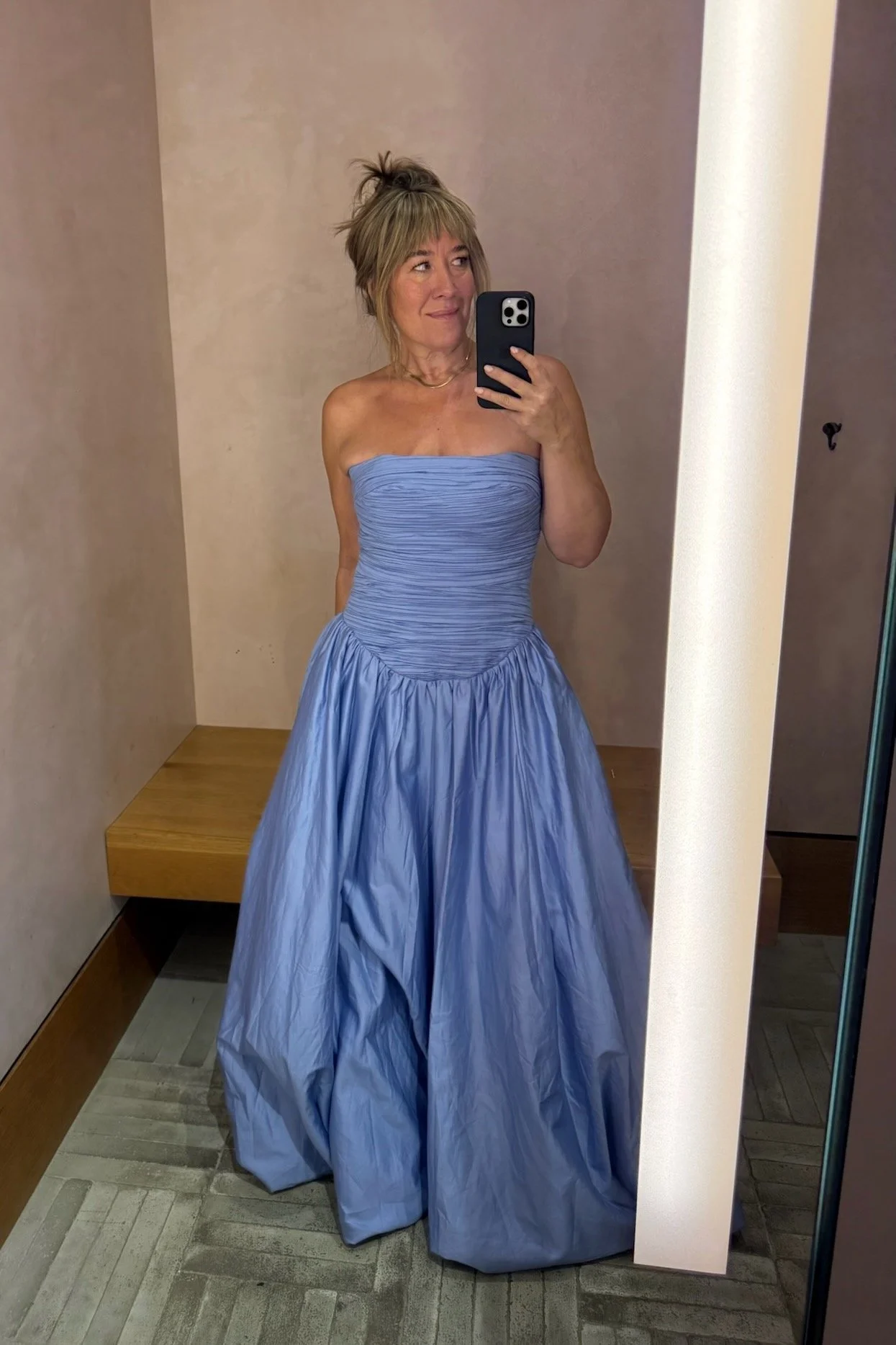 Mare Mare Briana Strapless Drop-Waist Bubble-Hem Midi Dress*
