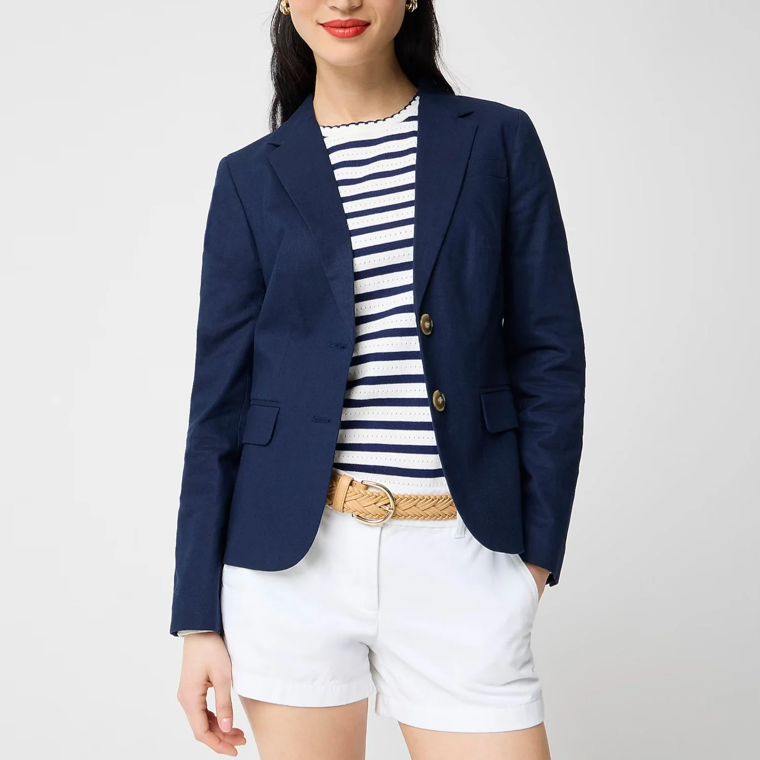 There’s a lingering question of what piece of outerwear do I wear in spring when misty mornings turn to sunny lunch hours turn to chilly evenings. The answer is a linen blazer. It’s more tailored and polished than a pilling sweater - lighter and less bulky than a full-on jacket. It works over long pants and midi skirts and dresses. It dresses down in the daytime and up in the evenings.