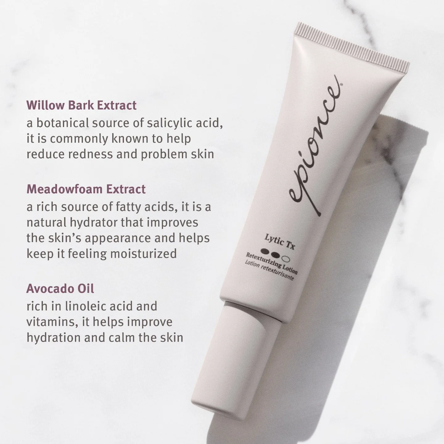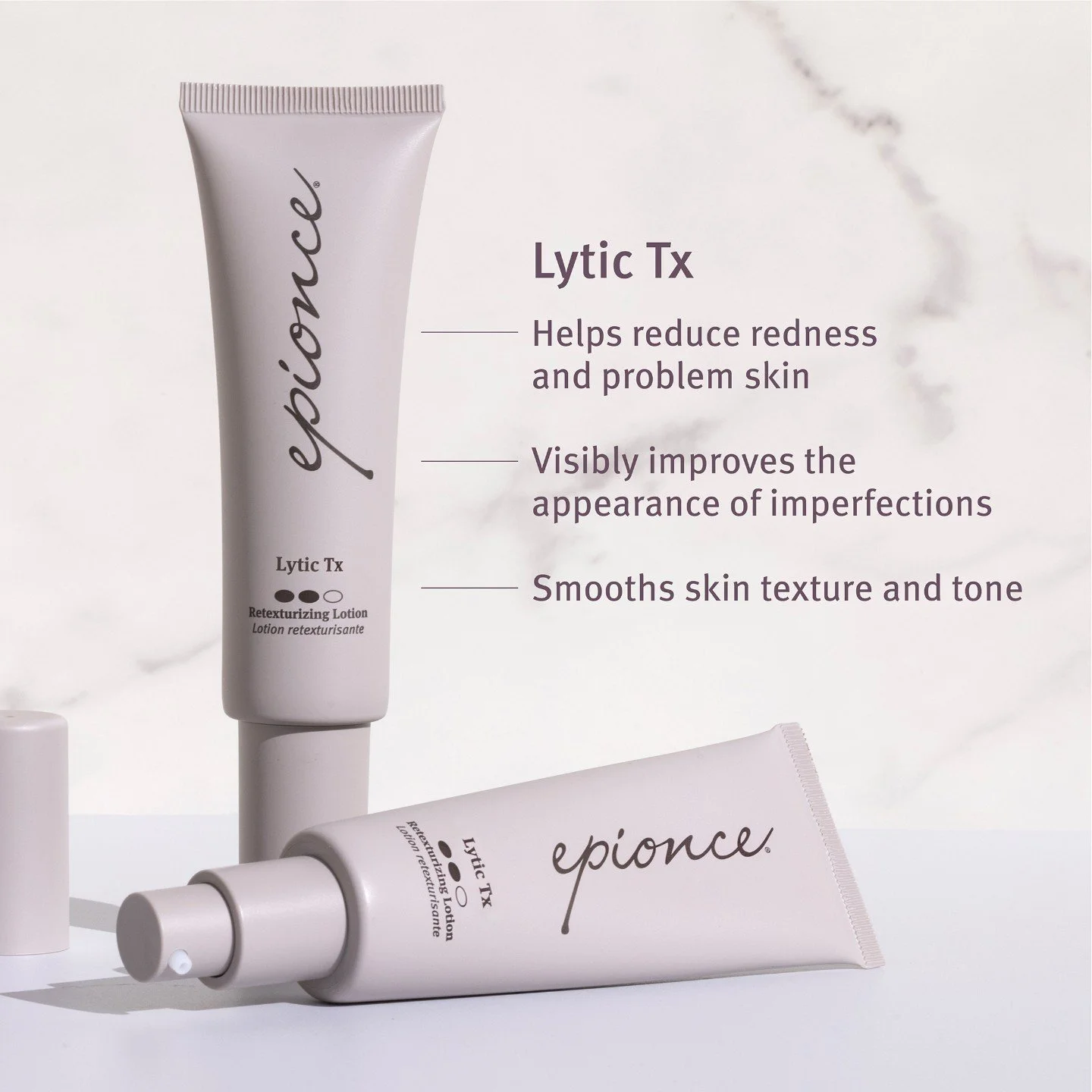 It’s called Lytic Tx by Epionce, the tube is boring, the brand seems blah, and yet it’s the most effective product we’ve used in a very long time.